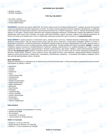 KATEGORIE DLA TEJ OFERTY WCZASY w Polsce WCZASY