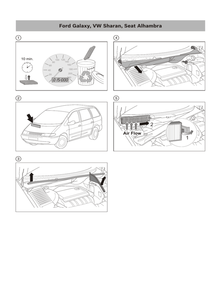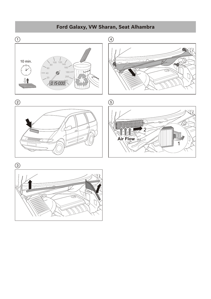 Ford Galaxy, VW Sharan, Seat Alhambra 1 4 10 min. 80 60 180 40 200 20 0 2 100 120 140 160 240 5 2 Air Flow 1 3