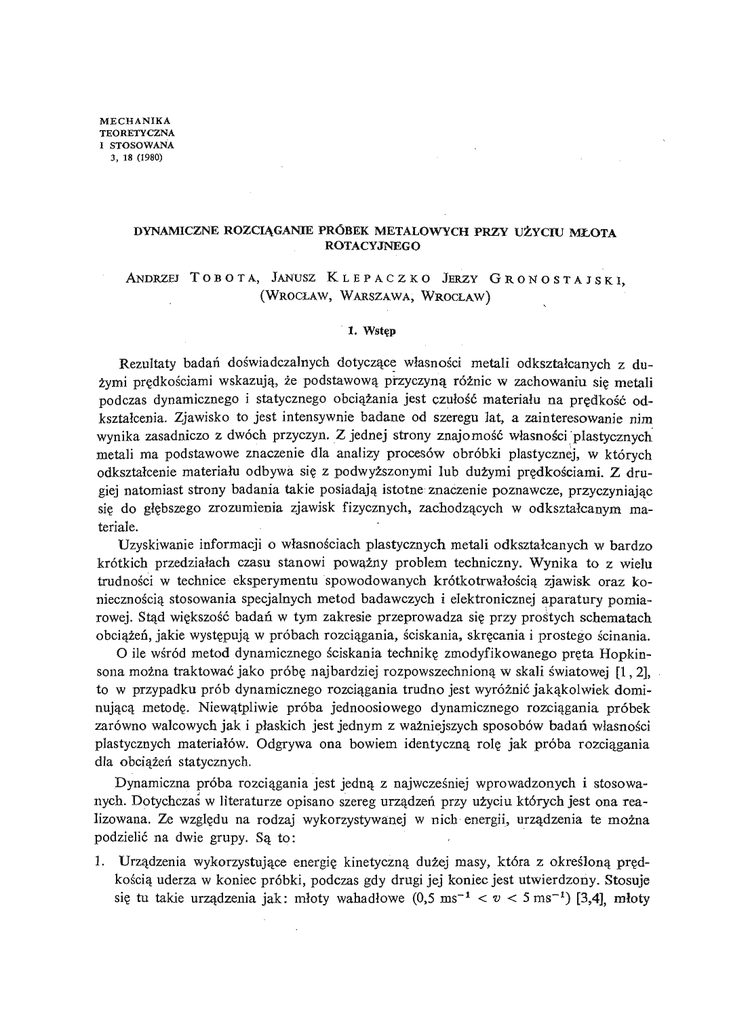 13. J. KLEPACZKO, Urzą dzenie do dynamicznego skrę cania, Mech. Teoret. i Stos., 4, 5 (1967), 425.