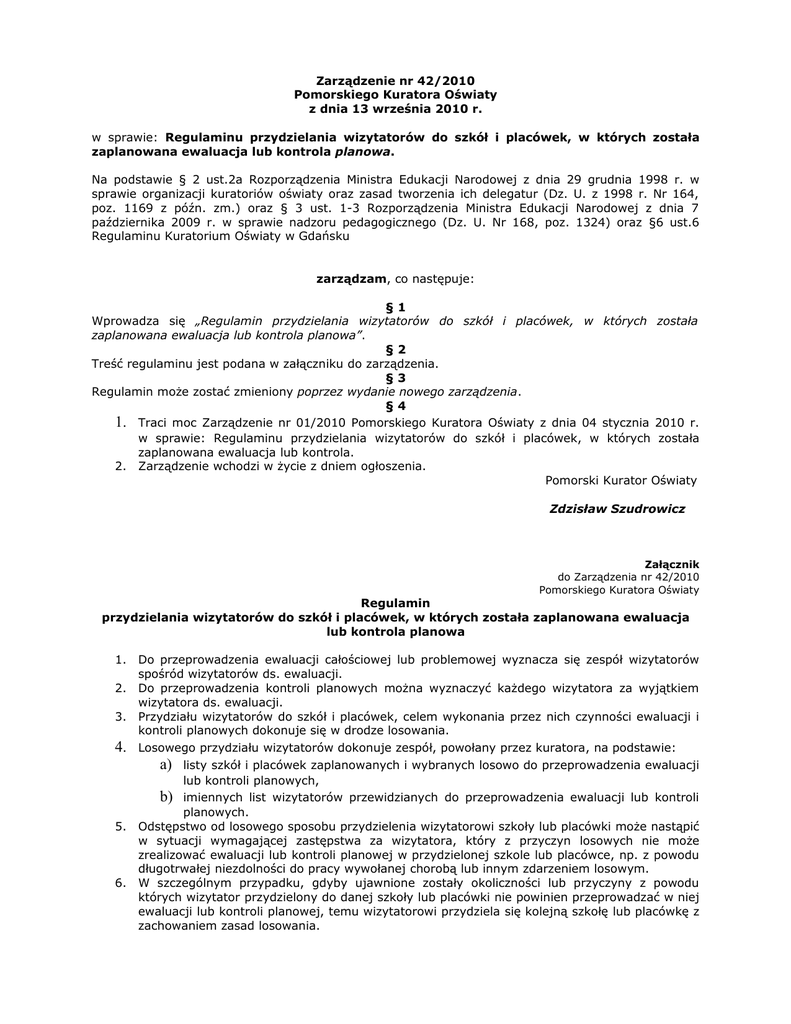 Zarządzenie nr 01/2010 - Kuratorium Oświaty w Gdańsku