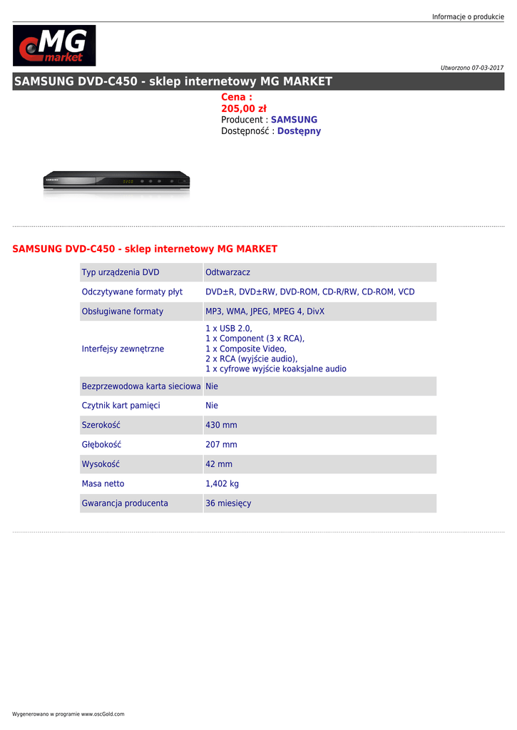 SAMSUNG DVD-C450 - sklep internetowy MG MARKET
