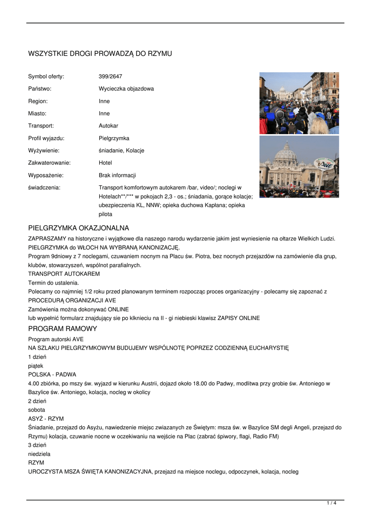 Zapisy na pielgrzymkę Zamawiający powienien przyjmować na druku AVE formularz zgłoszeniowy- który jest jednocześnie