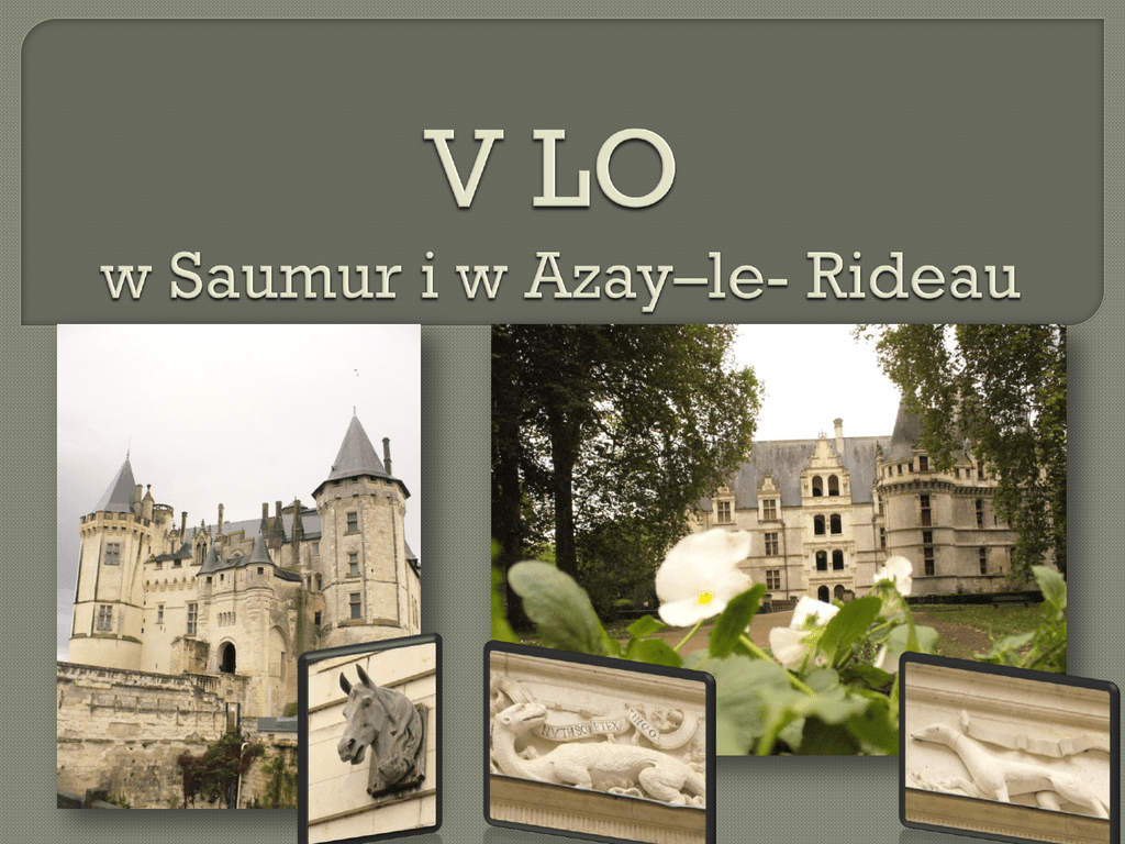 W strugach deszczu wyruszyliśmy do Saumur. Mamy dużo szczęścia, ponieważ gdy tylko opuszczamy autokar natychmiast wraca pogoda… gdy wyjeżdżamy deszcz zaczyna padać. Saumur to miasto słynne z trzech rzeczy: pięknego zamku, urokliwej starówki i szkoły kawalerii. Do dzisiaj są tam wspaniałe ujeżdżalnie i wielkie stajnie pełne super rumaków dla elewów. Kolejne piękne francuskie miasteczko z bogatą historią. Zamek w Azay- le- Rideau zwiedzaliśmy pod opieką świetnej p. Przewodnik, która bardzo dokładnie i fachowo uczyła nas jak czytać renesansowy zamek, jak znaleźć jego średniowieczną przeszłość, jak wczuć się w świat gdy tętnił życiem , gdy był on przedmiotem pożądania kolejnych właścicieli, którzy najbardziej pragnęli zaznaczyć swoje istnienie dla potomnych. KR