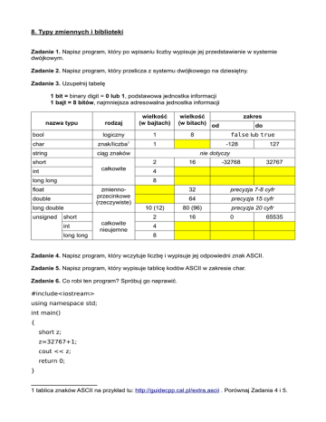 8. Typy zmiennych i biblioteki