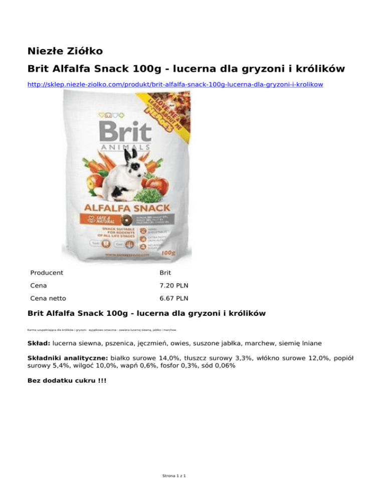 Niezłe Ziółko Brit Alfalfa Snack 100g