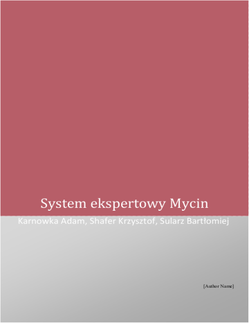 Page 1 System ekspertowy Mycin Karnowka Adam, Shafer Krzysztof,Sularz Bartłom iej [Author Name] Mycin – powstanie System ekspertow y M ycin pow stałna początku lat 70-tych na uniwersytecie w Stanford. Prace nad jego pow staniem trw ały około 6 lat. M ycin pow stał na podstaw ie innego system u ekspertow ego D endral,znacznie rozszerzając jego m ożliw ości. System m iałza zadanie szybką diagnozę chorób zakażnych krw ioraz przepisanie lekarstw w raz z daw kow aniem dla pacjentów ,zależnie od ich płci,w agi,grupy krw ietc.Ważnym czynnikiem była niekom pletność bazy wiedzy medycznej (w ynikająca z braku lekarstw czy terapiidla niektórych chorób),w obec którejM ycin podaw ałnajbardziejpraw dopodobne w nioski wraz z solidną,m erytoryczną argum entacją. Nazwa Mycin w iąże się z przepisyw anym iprzez system antybiotykami – jako że w iększość antybiotyków na rynków posiada przedrostek –mycin. Sposób działania Podobnie jak w przypadku w ielu innych system ów ekspertow ych,zasada działania M ycin polega na zadawaniu serii pytań oraz wnioskowaniu opartym na uzyskanych odpow iedziach izestaw ie reguł,które stanow ią bazę w iedzy systemu. Przykład interakcjilaboranta z system em : 1. Imię I nazwisko pacjenta ** PIOTR NOWAK 2. Płeć (M/Ż): ** M 3. Wiek ** 35 Tutajnastępuje seria pytań zw iązanych z pobraną próbką krwi oraz w ykrytych ciałobcych. Page 2 (Treść trudna do przetłum aczenia dla osoby nie znającejfachu m edycznego). System zadaje około 50-60 pytań przed postawieniem diagnozy. W arto zaznaczyć,że w czasie pracy,system w ykryw a literów kiw odpowiedziach laboranta,um ożliw ia także laborantow izaznaczenie stopnia niepew nościodpow iedzi.W każdejchw ililaborantm oże zażądać w yjaśnienia,czem u takie pytanie a nie inne zostało zadane (polecenie WHY), w ów czas system przyw ołuje regułkę z bazy w iedzy pokazując tym sam ym zasadność zadanego pytania. Po skończeniu system podaje sw oją diagnozę: INFECTION-1 is BACTEREMIA <ITEM-1> <ITEM-2> <ITEM-3> <ITEM-4> E.COLI [ORGANISM-1] KLEBSIELLA [ORGANISM-1] ENTEROBACTER [ORGANISM-1] KLEBSIELLA-PNEUMONIAE [ORGANISM-1] System um ożliw ia także korzystanie z zasobów w iedzy poprzez system zapytań,zbliżony logicznie do ludzkiego: ** JAKĄ DAWKĘ ERYTHROMYCINU POLECASZ? Kiedy ERYTHROMYCINA jest podawana dla choroby BACTEREMIA, zalecaną dawką jest: JEŚLI wiek jest > 12 lat WÓWCZAS 12 mg/kg q6h IV W INNYM WYPADKU, JEŚLI wiek > 8 lat WÓWCZAS 5 mg/kg q6h IV W INNYM WYPADKU, JEŚLI wiek> 2 lat WÓWCZAS 5 mg/kg q12h IV Page 3 System Mycin odniósłw ielkisukces.Popraw ność diagnozy proponow anej przez system oscyluje w okolicach 65%,co jestw ynikiem lepszym niż w ynik absolw entów kończących studia m edyczne,jednakże gorszym niż efektyw ność ekspertów z danejdziedziny (ok.80%). Pomimo tego sukcesu system Mycin nie jest powszechnie stosowany w celu określania diagnozy.N ie ze w zględu niedoskonałościtechnicznych lecz wskutek w ątpliw ościzw iązanych z aspektem etycznym .W iele środow isk nie dopuszcza do siebie m yśli,że o sukcesie leczenia,które często decyduje o życiu lub śm iercipacjenta m a decydow ać program kom puterow y. W przypadku błędnejdiagnozy,ktoś m usiponieść odpow iedzialność. D latego też,system używ any jest głów nie w szkołach m edycznych, gdzie adpecjilekarskiego fachu m ogą konfrontow ać sw oje decyzje z systemem. Baza w iedzy M ycina jest najw iększym m edycznym repozytorium w iedzy m edycznejna św iecie.Jejautoram isą w ybitni lekarze, eksperci ze swoich dziedzin.Baza M ycina m oże być bardzo łatw o m odyfikow ana iuzupełniania i tak też się dzieje. Warto też w spom nieć,że M ycin jest system em na bazie którego pow stało w iele innych znakom itych sestem ów ekspertow ych,takich jak:baobab, guidon, neomycin, teiresias, wheeze czy clot. Page 4