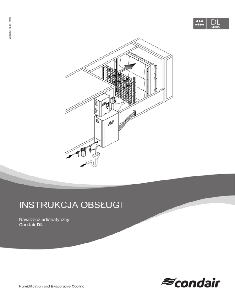 2580753 PL SF 1502 INSTRUKCJA OBSŁUGI Nawilżacz adiabatyczny Condair DL Humidification and Evaporative Cooling Dziękujemy Państwu za wybranie Condair Data instalacji (DD/MM/RRRR): Data oddania do użytku (DD/MM/RRRR): Miejsce: Model: Numer seryjny: Producent Condair Group AG Talstrasse 35-37, CH-8808 Pfäffikon Phone: +41 55 416 61 11, Fax: +41 55 416 62 62 [email protected], www.condair.com Prawa własności Dokument ten i informacje ujawnione w niniejszym dokumencie są zastrzeżonymi danymi Condair Group AG. Zabrania się kopiowania, wykorzystywania lub ujawniania niniejszego dokumentu jak i zawartych w nim informacji innym osobom bez pisemnej zgody Condair Group AG, z wyjątkiem zakresu wymaganego do instalacji lub obsługiwania przez odbiorców urządzenia. Informacja o odpowiedzialności Condair Group AG nie przyjmuje żadnej odpowiedzialności za niewłaściwą instalację lub użytkowanie urządzenia spowodowane użyciem części/komponentów/urządzeń, które nie są autoryzowane przez Condair Group AG. Prawa autorskie Copyright 2014, Condair Group AG Wszelkie prawa zastrzeżone. Zastrzega się możliwość dokonywania modyfikacji technicznych Spis treści 1 1.1 1.2 Informacje wstępne Na samym początku Uwagi dotyczące instrukcji obsługi 5 5 5 2 Dla Państwa bezpieczeństwa 7 3 3.1 3.2 3.3 3.4 3.5 3.6 3.7 3.8 3.9 Przegląd produktu Przegląd modeli Oznakowanie produktu / Który model posiadasz Podstawowa konstrukcja nawilżacza adiabatycznego Condair DL Opis funkcjonowania Schemat hydrauliczny Przegląd systemu Condair DL Przegląd jednostki nawilżania Condair DL Przegląd jednostki sterującej Condair DL Przegląd jednostki centralnej Condair DL 9 9 9 11 12 14 15 16 17 18 4 4.1 4.2 4.3 4.4 4.4.1 4.4.2 4.4.3 4.4.4 4.4.5 4.5 Praca urządzenia Pierwsze uruchomienie Wyświetlacz i elementy operacyjne Ponowne uruchomienie po przerwaniu użytkowania Uwagi dotyczące pracy urządzenia Ważne uwagi dotyczące pracy Przekaźnik komunikatów pracy i awarii Kontrole podczas pracy urządzenia Manualne przepłukiwanie systemu wodnego Obniżanie ciśnienia systemu wodnego Odłączenie systemu 19 19 20 21 22 22 22 22 23 24 24 5 5.1 5.1.1 5.1.2 5.2 5.3 5.3.1 5.3.2 5.4 5.4.1 5.4.2 5.4.3 5.4.4 5.4.5 Obsługa oprogramowania sterującego Condair DL Standardowy ekran roboczy wyświetlacza Wskaźniki stanu pracy Wskaźniki konserwacji i usterek Sterowanie/obsługa oprogramowania sterującego Condair DL Funkcje informacyjne Dostęp do informacji na temat pomocy technicznej Dostęp do informacji o systemie Konfiguracja Dostęp do podmenu “Configuration” Aktywacja/dezaktywacja i konfiguracja funkcji jednostki – podmenu “Features” Ustawienia sterowania wilgotnością – podmenu "Control Settings" Ustawienia podstawowe – podmenu “General” Ustawienia Łączności – podmenu “Communication” 26 26 27 28 29 30 30 30 33 33 33 34 35 36 Spis treści 3 4 5.5 5.5.1 5.5.2 5.5.2.1 5.5.2.2 5.5.2.3 5.6 5.6.1 5.6.2 Funkcje związane z konserwacją Dostęp do podmenu “Service” Wykonywanie funkcji związanych z konserwacją – podmenu “Service” Diagnostyczne funkcje wartości wejsciowych – podmenu “Input Diagnostics” Diagnostyczne funkcje wydajności – podmenu "Output Diagnostics” Funkcje diagnostyczne przekaźnika – podmenu “Relay Diagnostics” Ustawienia administratora Dostęp do podmenu “Administrator” Włączanie/wyłączanie ochrony hasłem 38 38 38 40 42 42 43 43 43 6 6.1 6.2 6.2.1 6.2.2 6.3 6.4 6.4.1 6.4.2 6.4.3 6.5 6.6 6.7 Konserwacja i wymiana komponentów Ważne uwagi dotyczące konserwacji Higiena i Konserwacja według VDI 6022 Strona 1 Przegląd okresowy Kompletny przegląd systemu Uwagi dotyczące czyszczenia i środków czyszczących Demontaż i instalacja komponentów Demontaż i instalacja płyt ceramicznych Demontaż i instalacja dysz zraszających Demontaż i instalacja mocowania dysz Wymiana modułu wzbogacania wody jonami srebra “Hygieneplus” Wymiana sterylnego filtra i odpowietrzanie obudowy filtra Kasowanie licznika konserwacji 44 44 45 46 47 49 50 50 52 53 54 55 56 7 7.1 7.2 7.3 7.4 7.5 7.6 Usuwanie awarii Wskaźniki błędów Lista usterek Usterki bez wskazań błędów Uwagi dotyczące napraw Wymiana bezpieczników i zapasowej baterii w jednostce sterującej Kasowanie sygnału uszkodzenia 57 57 58 63 64 65 66 8 8.1 8.2 Wycofanie z eksploatacji/Utylizacja Wycofanie z eksploatacji Utylizacja/Recykling 67 67 67 9 9.1 9.2 Specyfikacja produktu Dane techniczne Opcje 68 68 69 10 10.1 10.2 10.3 Załącznik Deklaracja zgodności CE Schemat instalacji Condair DL Schemat oprzewodowania Condair DL 70 70 71 72 Spis treści 1 Informacje wstępne 1.1 Na samym początku Dziękujemy Państwu za zakup nawilżacza adiabatycznego Condair DL. Nawilżacz adiabatyczny Condair DL charakteryzuje się aktualnymi osiągnięciami technicznymi i spełnia wszystkie uznane normy bezpieczeństwa. Niemniej jednak, niewłaściwe użytkowanie nawilżacza adiabatycznego Condair DL może skutkować zagrożeniem dla użytkownika lub osób trzecich i/lub uszkodzeniem instalacji i budynku. W celu zapewnienia bezpiecznego, właściwego i ekonomicznego działania nawilżacza adiabatycznego Condair DL, proszę przestrzegać i postępować zgodnie z wszystkimi informacjami i instrukcjami dotyczącymi bezpieczeństwa zawartymi w niniejszej dokumentacji, jak również w oddzielnej dokumentacji dotyczącej komponentów zainstalowanych w nawilżaczu. Jeśli mają Państwo jakieś pytania, na które nie znaleźli Państwo wystarczającej odpowiedzi w niniejszej dokumentacji, proszę skontaktować się z serwisem Condair. Z przyjemnością pomogą oni Państwu. 1.2 Uwagi dotyczące instrukcji obsługi Ograniczenie Przedmiotem niniejszej instrukcji obsługi jest nawilżacz adiabatyczny Condair DL. Różne opcje i akcesoria są tylko opisywane w zakresie niezbędnym do właściwego funkcjonowania urządzenia. Dalsze informacje dotyczące opcji i akcesoriów mogą być uzyskane z odpo