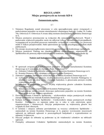 REGULAMIN Miejsc postojowych na terenie KD 6