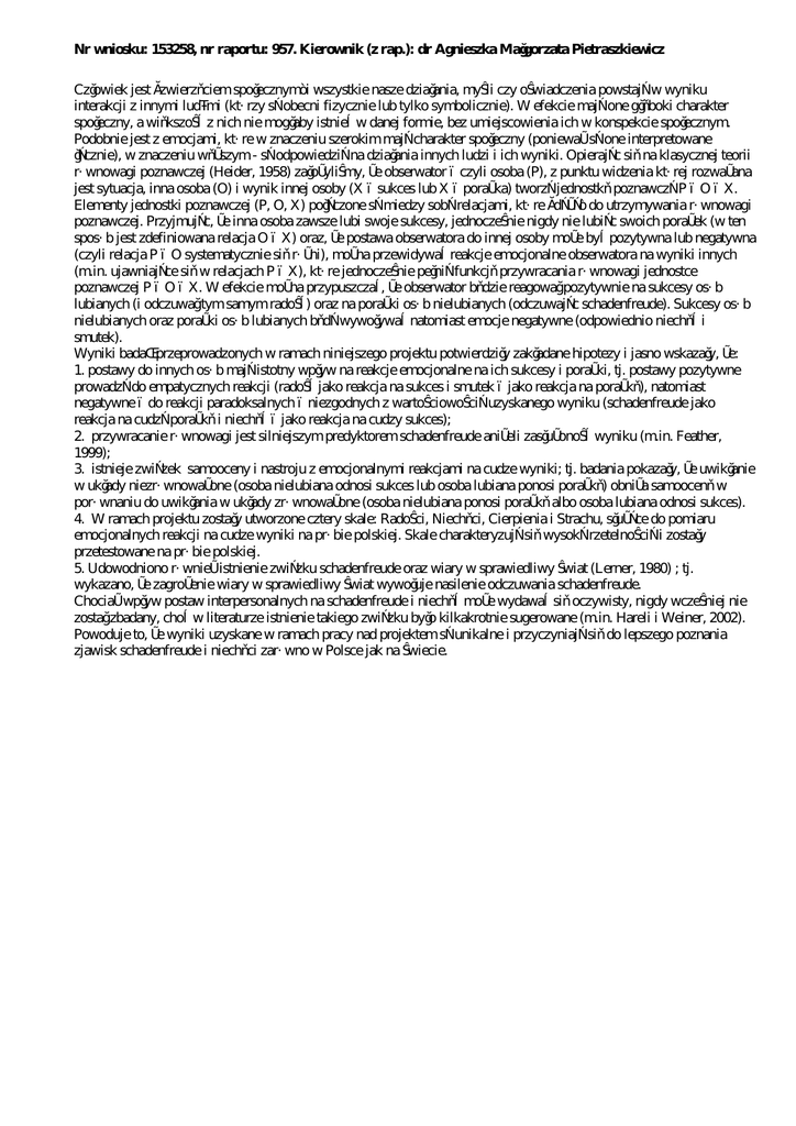 Nr wniosku: 153258, nr raportu: 957. Kierownik (z rap.): dr
