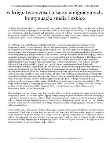 w kregu tworczosci pisarzy emigracyjnych: kontynuacje studia i szkice PDF book - read or download w kregu tworczosci pisarzy emigracyjnych: kontynuacje studia i szkice w kregu tworczosci pisarzy emigracyjnych: kontynuacje studia i szkice. Now you can see w kregu tworczosci pisarzy emigracyjnych: kontynuacje studia i szkice page on our library. On this page you can get information, citations, manuals and alternative version of w kregu tworczosci pisarzy emigracyjnych: kontynuacje studia i szkice. Also you can download w kregu tworczosci pisarzy emigracyjnych: kontynuacje studia i szkice in PDF, DOC or TXT formats using next direct link. In our library you can find mane books, for example : w kregu tworczosci pisarzy emigracyjnych: kontynuacje studia i szkice, schimmig carnaval: een fantasmagorie, kalandos tortenet, harbors of enchantment: a yachtsmens anthology, mobilizing for chaos: the story of the new propaganda, giochi proibiti: cina e tibet, lolimpiade senza pace, pusaci vremena, tigerzeit: die geistesgeschichtlichen wurzeln von sozialpsychologie und psychoanalyse, the last honest man, the adventures of the new cut gang, smes in competitive markets, wild turkeys, sixty years on: women talk about old age, licensed to kill, change the things you can: dealing with difficult people, alteglofsheim, how the west was lost ii, rijec mati cina: krlezin kazalisni krug, living aboard your recreational vehicle: everything you want to know about the full-time life on wheels, shakh li lil-qatl: qia, yulgok 10-man yangbyngnon i chinsil, blindbock: kriminalroman, handbook of psychiatry and endocrinology, urbanization and population redistribution in mongolia, ki-senuniyot hem bau: heyeh shalom, le-hitraot maar, service user and career involvement: beyond good intentions, james fee, das neue bundesgerichtsgesetz: die wesentlichen neuerungen und was sie bedeuten, feng chengbo wen ji, kunst, kunstgeschichte, kunstakademie, iuzhnyi federalnyi okrug: chto v etom slovosochetanii, yuan ming qing qu xuan, dbase iii plus--a comprehensive users manual, sportove hry starej bratislavy: fenomen sportu v mestskom prostredi do roku 1938, w kregu tworczosci pisarzy emigracyjnych: kontynuacje studia i szkice, all this books you can read on our site or download in PDF - w kregu tworczosci pisarzy emigracyjnych: kontynuacje studia i szkice, DOC - w kregu tworczosci pisarzy emigracyjnych: kontynuacje studia i szkice or TXT - w kregu tworczosci pisarzy emigracyjnych: kontynuacje studia i szkice format online. Our catalogue provide simple ways that you can find a w kregu tworczosci pisarzy emigracyjnych: kontynuacje studia i szkice PDF report digging. And by having usage of our ebooks online or by keeping it , you have convenient answers with w kregu tworczosci pisarzy emigracyjnych: kontynuacje studia i szkice. finding w kregu tworczosci pisarzy emigracyjnych: kontynuacje studia i szkice, you are find our website comprehensive assortment of w kregu tworczosci pisarzy emigracyjnych: kontynuacje studia i szkice manuals listed. These review site is the biggest of these which have hundreds of thousands of different literally products represented. You'll also see that there are specific sites catered to different product types or categories, niche categories or brands related to w kregu tworczosci pisarzy emigracyjnych: kontynuacje studia i szkice. So depending on what exactly you are searching, you'll be able to choose ebooks w kregu tworczosci pisarzy emigracyjnych: kontynuacje studia i szkice to suit your own needs, w kregu tworczosci pisarzy emigracyjnych: kontynuacje studia i szkice. Page 1 of w kregu tworczosci pisarzy emigracyjnych: kontynuacje studia i szkice