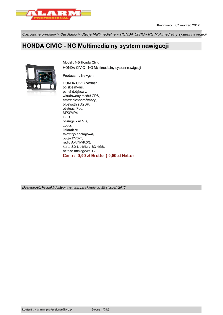 HONDA CIVIC - NG Multimedialny system nawigacji