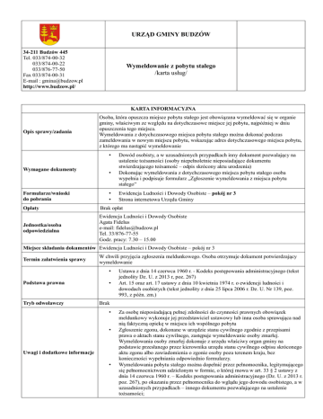 URZĄD GMINY BUDZÓW Wymeldowanie z pobytu stałego /karta