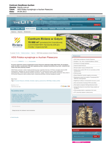 Centrum Handlowe Auchan Gazeta: thecity.com.pl Tytu³: HDS Polska wynajmuje w Auchan Piaseczno Data: 04.09.2013 × W ramach naszej witryny stosujemy pliki cookies. Kontynuując przeglądanie strony, wyrażasz zgodę na używanie przez nas plików cookies. Dowiedz się w ięcej tutaj. | TheCity Mobile Mapa serwisu RSS Nie jesteś zalogowany w portalu Zaloguj się Wpisz szukaną frazę Start Rynek Najemcy Biura Raporty Obiekty handlowe Hotele Magazyny Publikacje Wydarzenia Rejestruj Szukaj Konferencje Wiadomości Tu jesteś: The City Obiekty handlowe Najemcy HDS Polska wynajmuje w Auchan Piaseczno Wiadomości HDS Polska wynajmuje w Auchan Piaseczno HDS Polska wynajmuje w Auchan Piaseczno Panattoni: 7 tys. mkw. w Łodzi dla Delfarmy i Damco Data publikacji: 04/09/2013 , Autorzy: mryczywolska CH Riviera ma nowego dyrektora Do grona najemców centrum handlowego Auchan Piaseczno dołączyła spółka HDS Polska. W wynajętym przez nią lokalu o powierzchni 109 mkw. pojawiły się dwie, należące do portfolio firmy marki - kawiarnia So! Cofee oraz salon prasowy Inmedio. HDS Polska wchodzi w skład międzynarodowej grupy Lagardere Services. W Polsce zarządza obecnie 650 lokalizacjami. Należąca do niej sieć sklepów Inmedio ma w asortymencie tytuły z pasy codziennej i specjalistycznej. Ofertę dopełniają produkty impulsowe, napoje, słodycze oraz artykuły serwisowe. Nowy lokal w CH Auchan Piaseczno salon prasowy dzieli z kawiarnią So!Cofee, również należącą do spółki. Czterech zbada Polonusa Marvipol zapłaci więcej za Mokotów Park Polimex chce uzyskać 200 mln zł ze sprzedaży portfela nieruchomości PHN tnie koszty Gdynia Waterfront: kamień w ęgielny wmurowany Kraj: Poland Deweloperzy obeszli się smakiem. Prywatyzacja PZL WZM bez rozstrzygnięcia Tagi: CH Auchan Piaseczno, So!Cofee, Immochan, najemcy, powierzchnia, HDS Polska, Inmedio, portfolio PageGroup na dłużej w warszawskim biurowcu Lumen Dwie warszawskie inwestycje PHN coraz bliżej Hines będzie zarządzać Sterlinga Business Center Średnia ocena Na podobny temat Vantage Development coraz bliżej II etapu projektu we Wrocławiu PHN sprzedaje działki w sąsiedztwie II linii metra LPP: przychody większe o jedną trzecią Panattoni: 7 tys. mkw. w Łodzi dla Delfarmy i Damco PageGroup na dłużej w warszawskim biurowcu Lumen PHN sprzedaje działki w sąsiedztwie II linii metra LPP: przychody większe o jedną trzecią MLP Group buduje dla Universal Express Samsung Electronics powiększa biuro w University Business Park Centrum handlowe FamilyPoint w Ełku z pozwoleniem na budowę Wideo RONDO 1 Komentarze Zaloguj się aby móc dodawać nowe komentarze. Powrót do góry Newsletter Zapisz się na bezpłatny, codzienny newsletter Wpisz adres e-mail Dodaj Centrum Handlowe Auchan Gazeta: thecity.com.pl Tytu³: HDS Polska wynajmuje w Auchan Piaseczno Data: 04.09.2013 Raporty Raport Colliers International EMEA Office Report 12/03/2013 Rynek powierzchni magazynowych w Polsce w 2012 r. wg JLL 11/03/2013 biura CBRE centra handlowe centrum handlowe Colliers International Cushman & Wakefield DTZ Echo Investment Gdańsk giełda GPW GTC Jones Lang LaSalle Kraków LPP Lublin magazyny najemcy Poznań przetarg Rank Progress Raport Reserved Katowice Rzeszów Silesia City Center Szczecin Warszawa Najpopularniejsze Wrocław Łódź Najwyżej oceniane Property Book 2013 Sukcesja - nowa jakość w Łodzi Prologis podsumowuje półrocze i planuje kolejne inwestycje Zdrojowa Invest ruszyła z przytupem ze sprzedażą apartamentów w Baltic Park Molo Postępują prace przy budowie Diamond Business Park Ursus (Galeria) The City - grudzień 2012 Architekci wezmą się za dworzec PKP w Gliwicach Adres, który definiuje krajobraz Warszawy Enel-Med wynajmie taniej w Poznaniu Muzeum Bitwy Warszawskiej 1920 r. ma powstać w Ossowie The City O serwisie Regulamin Kontakt Property Media Group s.c. ul. Stępińska 22/30 tel. +48 22 841 31 52 tel. +48 22 851 03 05 NIP 5213543170 REGON 142022595 Centrum Handlowe Auchan Gazeta: thecity.com.pl Tytu³: HDS Polska wynajmuje w Auchan Piaseczno Data: 04.09.2013 Polityka prywatnościi Reklama www.wcentrum.pl 00-739 Warszawa Formularz kontaktowy Copyright (c) 2011 The City | All rights reserved | Polityka prywatności tel./fax +48 22 840 65 21