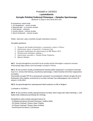 Protokół nr 14/2015 z posiedzenia Zarządu Polskiej Federacji