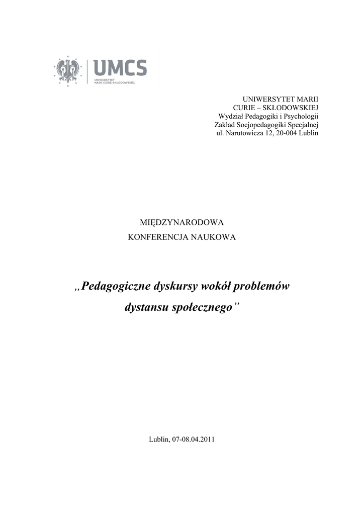 „Pedagogiczne dyskursy wokół problemów dystansu społecznego”