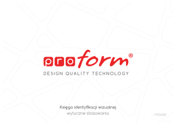 D E S I G N Q U A L I T Y T EC H N O LO G Y Księga identyfikacji wizualnej wytyczne stosowania by D E S I G N Q U A L I T Y T EC H N O LO G Y 1 LOGO Forma podstawowa z claimem 5 Forma uproszczona bez claimu 6 Forma podstawowa na ciemne tła 7 Pole ochronne8 Konstrukcja9 Wartości minimalne 10 Zakazy11 2 KOLORY Paleta podstawowa13 Wersja monochromatyczna 14 Wersja achromatyczna15 Wersja achromatyczna16 Submarki17 Konstrukcja submarek18 Typografia submarek 19 Kolorystyka modulo kids 20 3 TYPOGRAFIA Font22 4 KEY VISUAL Zasady stosowania motywu 24 Motyw podstawowy25 5 SPÓJNOŚĆ Papier firmowy, wizytówka 27 Teczka firmowa 28 Stopka mailowa29 AdWords30 Oklejenie Focus31 Oklejenie Ivveco32 Facebook33 Youtube34 G+35 logo Forma podstawowa z claimem 5 Forma uproszczona bez claimu 6 Forma podstawowa na ciemne tła 7 Pole ochronne8 Konstrukcja9 Wartości minimalne 10 Zakazy11 1 LOGO / FORMA PODSTAWOWA Z CLAIMEM D E S I G N Q U A L I T Y T EC H N O LO G Y Znak występuje w dwóch wersjach. Zalecany sposób eksponowania znaku to używanie go na białym tle w kolorach podstawowych. Używanie znaku w innych kolorach dopuszczalne jest jedynie w szczególnych sytuacjach niepozwalających na jego reprodukcję w kolorystyce podstawowej, takich jak ograniczona ilość kolorów druku lub inne ograniczenia techniczne. 5 1 LOGO / FORMA UPROSZCZONA BEZ CLAIMU Znak występuje w dwóch wersjach. Zalecany sposób eksponowania znaku to używanie go na białym tle w kolorach podstawowych. Używanie znaku w innych kolorach dopuszczalne jest jedynie w szczególnych sytuacjach niepozwalających na jego reprodukcję w kolorystyce podstawowej, takich jak ograniczona ilość kolorów druku lub inne ograniczenia techniczne. 6 1 LOGO / FORMA PODSTAWOWA NA CIEMNE TŁA D E S I G N Q U A L I T Y T EC H N O LO G Y Używanie znaku w innych kolorach niż w palecie podstawowej dopuszczalne jest jedynie w szczególnych sytuacjach niepozwalających na jego reprodukcję w kolorystyce podstawowej, takich jak ograniczona ilość kolorów druku lub inne ograniczenia techniczne. Sugeruje się stosowanie znaku na tle jak powyżej, na kolorze czerwonym ( PANTONE 485 C ). 7 1 LOGO / POLE OCHRONNE D E S I G N Q U A L I T Y T EC H N O LO G Y Pole ochronne to umowna, minimalna przestrzeń wokół znaku, w którą nie może wchodzić żadna obca forma graficzna (inny znak, grafika itp). Minimalna przestrzeń wymagana dla znaku Proform wyznaczona jest przez literę „f” występującej w logotypie. 8 1 LOGO / KONSTRUKCJA D E S I G N Q U A L I T Y T EC H N O LO G Y Znak Proform zaprojektowany jest z zachowaniem odpowiednich proporcji, wyznaczonych na podstawie wymiarów danych elementów. Niedozwolone jest jakiekolwiek modyfikowanie przedstawionych proporcji. 9 1 LOGO / WARTOŚCI MINIMALNE Logo podstawowe Logo uproszczone Logo podstawowe Logo uproszczone D E S I G N Q U A L I T Y T EC H N O LO G Y D E S I G N Q U A L I T Y T EC H N O LO G Y 1,8cm 1,5cm 100px 80px Przedstawione wielkości minimalne występowania znaku Proform w formie elektronicznej oraz druku zostały ustalone w oparciu o czytelność znaku i nie należy ich przekraczać. Skalowanie poniżej tych wartości spowoduje utratę czytelności oraz obniżenie jakości odwzorowania znaku. 10 1 LOGO / ZAKAZY Nie obracaj znaku. Nie zmieniaj wielkości elementów znaku. Nie zmieniaj proporcji znaku. Nie przemieszczaj elementów znaku. Nie zmieniaj wybranego rodzaju typografii. Nie stosuj znaku sprzecznie z określonymi zasadami kolorystycznymi. Nie stosuj na znaku dodatków takich jak drop sha- Nie stosuj znaku na zdjęciach i wzorzystych tłach. Wytyczne dotyczą znaku w wersji podstawowej dow, glow, bevel, outline itp. 11 kolory Paleta podstawowa13 Wersja monochromatyczna14 Wersja achromatyczna15 Wersja achromatyczna16 Submarki17 Konstrukcja submarek18 Typografia submarek 19 Kolorystyka modulo kids20 2 KOLORYSTYKA / PALETA PODSTAWOWA 100% 100% RGB 0 0 0 HEX/HTML 000 CMYK 0 0 0 100 PANTONE 485 C RGB 218 41 28 HEX/HTML DA291 CMYK 0 95 100 0 100% RGB 255 255 255 HEX/HTML FFFFFF CMYK 0 0 0 0 80% 80% 80% 60% 60% 60% 40% 40% 40% 20 % 20 % 20 % Podstawowa paleta marki Proform składa się z 3 kolorów - czerwonego, czarnego, białego. Powyżej przedstawiono opis kolorów w najczęściej stosowanych standardach. Dopuszczalne rozbarwienia palety podstawowej występują w charakterze przeźroczystości. Rozbarwienia te mają zastosowanie pomocnicze i stanowią uzupełnienie palety podstawowej. Nie wolno stosować rozbarwniena dla samego znaku. 13 2 KOLORYSTYKA / WERSJA MONOCHROMATYCZNA D E S I G N Q U A L I T Y T EC H N O LO G Y Zalecany sposób eksponowania znaku to używanie go na białym tle w kolorach podstawowych. Stosowanie znaku w skali szarości dopuszczalne jest jedynie w sytuacjach szczególnych takich jak ograniczona ilość kolorów druku np. ogłoszenia w prasie czarnobiałej. 14 2 KOLORYSTYKA / WERSJA ACHROMATYCZNA D E S I G N Q U A L I T Y T EC H N O LO G Y Wariant achromatyczny znaku służy do reprodukcji przy użyciu graweru, haftu, suchego tłoku i innych specjalnych technik reprodukcji, w których ze względu na ich specyfikę niemożliwe jest zastosowanie podstawowej wersji znaku, tint ani znaku w skali szarości. 15 2 KOLORYSTYKA / WERSJA ACHROMATYCZNA D E S I G N Q U A L I T Y T EC H N O LO G Y Wariant achromatyczny znaku służy do reprodukcji przy użyciu graweru, haftu, suchego tłoku i innych specjalnych technik reprodukcji, w których ze względu na ich specyfikę niemożliwe jest zastosowanie podstawowej wersji znaku, tint ani znaku w skali szarości. 16 2 KOLORYSTYKA / SUBMARKI 17 2 KOLORYSTYKA / KONSTRUKCJA SUBMAREK x x x x x 1,5x Przy tworzeniu kolejnych submarek trzeba zwrócić szczególną uwagę na odległości między danymi elementami, wynoszączymi x. 18 2 KOLORYSTYKA / TYPOGRAFIA SUBMAREK Comfortaa Bold a ą b c ć d e A Ą B C Ć D E ę Ę f g h F G H i I j J k K l ł m n ń o p q r s ś L Ł M N Ń O P Q R S Ś s t u ó v w x y z ż ź T U Ó V W X Y Z