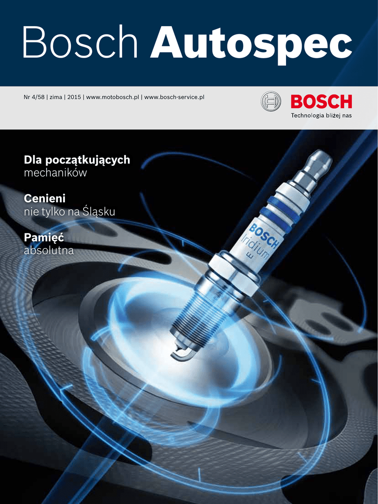 Bosch Autospec Nr 4/58 | zima | 2015 | www.motobosch.pl | www.bosch-service.pl Dla początkujących mechaników Cenieni nie tylko na Śląsku Pamięć absolutna Bosch Autospec | nr 4/58 | 2015 | spis treści Od redakcji modulatora układu hamulcowego na przykładzie trzyosiowej naczepy z systemem Knorr-Bremse Świece. To mocny temat tego numeru. TEBS4 2S/2M oraz testujemy obwody W sekcji układy i komponenty Boscha wysokiego ciśnienia systemu Common piszemy o świecach żarowych w ukła- Rail przy użyciu zestawu Diesel Set 3.1. dach wtryskowych Diesla. Uzupełnie- Dzięki rozwojowi motoryzacji niem do tekstu jest plakat – szybka samochody stają się coraz inteligent- diagnoza najczęstszych objawów niejsze i już dziś potrafią jeździć uszkodzenia świec żarowych. W czę- autonomicznie, bez udziału kierowcy. ści poświęconej produktom opisuje- Co więcej, charakteryzują się znako- my platynowe i irydowe świece mitą pamięcią, w której przechowywa- Autospeca życzy Państwu bezpieczeń- żarowe, którym nowoczesne silniki ne są informacje. Odczytując je, stwa na drogach, a z okazji zbliżają- wysokoprężne stawiają wysokie można odtworzyć informacje na temat cych się Świąt Bożego Narodzenia wymagania. sprawowania się pojazdu w przeszło- pomyślności, radości i spokoju ści. O pamięci absolutnej zapisanej w gronie najbliższych osób. Wyjątkowo w tym numerze przygo- Świece żarowe Boscha Wraz z nadejście zimy redakcja towaliśmy dwie porady techniczne. w „czarnej skrzynce” piszemy w dzia- Przedstawiamy procedurę wymiany le technika. Redakcja Spis treści Aktualności 1 Akcja reklamowa akumulatorów TEBS4 z wykorzystaniem testera diagnostycznego Bosch KTS Truck 15 Żarówki Boscha 16 Platynowe i irydowe świece Boscha w Internecie 1 Pierwszy system wspomagania kierowcy dla motocykli Układy i komponenty Boscha 9 Świece żarowe Boscha w układach 2 Bosch Wireless Charging od teraz w wersji mobilnej wysokiej jakości uszkodzenia świec żarowych Bosch-Service w Polsce Porady 19 Zostań autoryzowanym serwisem 18 Cenieni nie tylko na Śląsku Szkolenia 3 Dla początkujących mechaników 12 Testowanie obwodu wysokiego 4 Brama sieciowa (Gateway) przy użyciu zestawu Diesel Set 3.1 Technika Diagnostyka 14 Wykrywacz nieszczelności 6 Wymiana uszkodzonego modulatora naczepy Knorr-Bremse 20 Pamięć absolutna Ford Mondeo Mk IV Porady firmy Bosch ciśnienia systemu Common Rail w samochodzie zapłonowe Boscha 17 Oszczędny wybiera produkt wtryskowych Diesla 10 Szybka diagnoza: objawy 2 Nowa odsłona marki Junkers Produkty SMT 300 Magazyn Bosch Autospec redaguje dział Części Samochodowych i Wyposażenia Warsztatowego firmy Robert Bosch Sp. z o.o. ul. Jutrzenki 105, 02-231 Warszawa, tel. (022) 715 40 00, fax (022) 715 45 98, www.motobosch.pl, www.bosch-service.pl Zespół redakcyjny: Anna Borsukiewicz, Artur Chrust, Marcin Dynarek, Robert Dzierżanowski, Łukasz Kałucki, Marcin Kiełczewski, Sławomir Kosek, Tomasz Kraczko, Maciej Krzyczkowski , Tomasz Maciejasz, Tomasz Miluski, Tomasz Nowak, Ewa Peresada, Zbigniew Pilewski, Jacek Pochopień, Ryszard Polit, Jacek Pudło, Iwona Rokicka, Marta Surowiec. Nadzór redakcyjny i techniczny: KOZIER MEDIA PRESS Opracowanie graficzne: studio CARRY aktualności | nr 4/58 | 2015 | Bosch Autospec | 1 Akcja reklamowa akumulatorów Boscha w Internecie Jej hasło to „Frustracja? czy… pewny rozruch! Postaw na niezawodność”. Aby ułatwić dobór odpowiedniego akumulatora do pojazdu oraz przekonać zainteresowane wymianą osoby do zakupu akumulatorów Boscha, w Internecie trwa kampania reklamowa akumulatorów tej firmy. Jest ona podzielona na kilka kanałów, takich jak np.: u wyszukiwarka Google, gdzie osobom poszukującym akumulatora wyświetlają się linki do strony poświęconej akumulatorom Boscha; u portale internetowe, gdzie pojawiają się banery reklamowe akumulatorów Boscha. Po kliknięciu poszukująca akumulatora uzyskuje w szybki i prosty w baner, użytkownik jest przenoszony na stronę sposób możliwość doboru właściwego akumulatora internetową poświęconą akumulatorom firmy Bosch; do pojazdu. Celem kampanii jest także zapoznanie z ofertą u Facebook/YouTube/VOD – na których został umieszczony filmik reklamowy poświęcony akumulatorom Boscha. Akcja ma na celu pokazanie najważniejszych zalet akumulatorów Boscha i wywołanie potrzeby ich zakupu w sezonie jesienno-zimowym. Akcja jest skierowana do szerokiego grona odbiorców i potrwa do końca roku. Działania reklamowe w Internecie akumulatorów Boscha, nowatorskiej technologii oraz są również prowadzone w innych krajach: na terenie informacji o akumulatorach. Dzięki przekierowaniu Niemiec, Czech, Austrii, Szwajcarii i Słowacji. na stronę poświęconą akumulatorom Boscha osoba Marcin Dynarek Pierwszy system wspomagania kierowcy dla motocykli Elektroniczne systemy wspomagania stają się coraz zwiększyć bezpieczeństwo, zwłaszcza w miastach, gdzie bardziej powszechne nie tylko w samochodach. duże natężenie ruchu sprawia, że konieczne są częstsze zmiany pasa ruchu. System wykorzystuje 4 czujniki Bosch stworzył asystenta martwego pola – pierwszy na ultradźwiękowe, które są montowane parami z przodu świecie system wspomagania dla motocykli. Pomaga on i z tyłu w poszyciu motocykla. Monitorując otoczenie motocykla ułatwiają kierowcy bezpieczne zmienianie pasów ruchu. Czujniki śledzą taki obszar w odległości do pięciu metrów – ten, który jest trudny lub wręcz niemożliwy do zobaczenia w lusterkach wstecznych. System ostrzega motocyklistę sygnałem optycznym w lusterku, gdy w martwym punkcie znajdzie się inny pojazd. Dzięki temu można np. uniknąć kolizji podczas zmiany pasa ruchu. Asystent martwego pola odróżnia pojazdy grożące kolizją od nadjeżdżających z przeciwka. Wspomaga też kierowcę w skomplikowanych sytuacjach drogowych. Urządzenie jest aktywne przy prędkościach od 25 do 80 km/h i dz