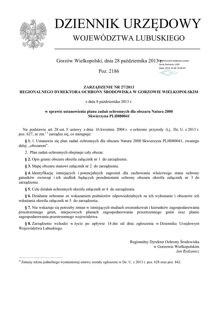 Zarządzenie Nr 27/2013 z dnia 8 października 2013 r.