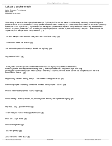 dostêpne s± na p³ytce DVD). Tym razem na lekcji pana profesora Grzegorza Fedynkiewicza subkultury potraktowano