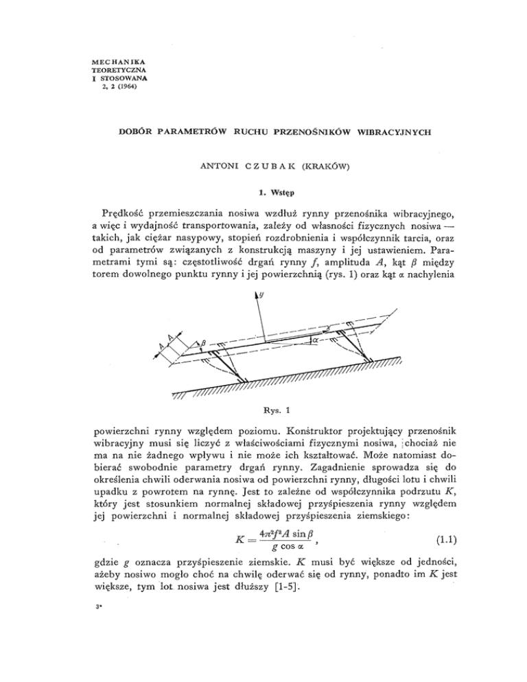 stosunek czasu lotu nosiwa do okresu drgań sita lub rynny, to powyż szy warunek bę dzie speł niony, gdy 0 < m < 1, wtedy 1 < K < 3,3. Poglą d ten jest