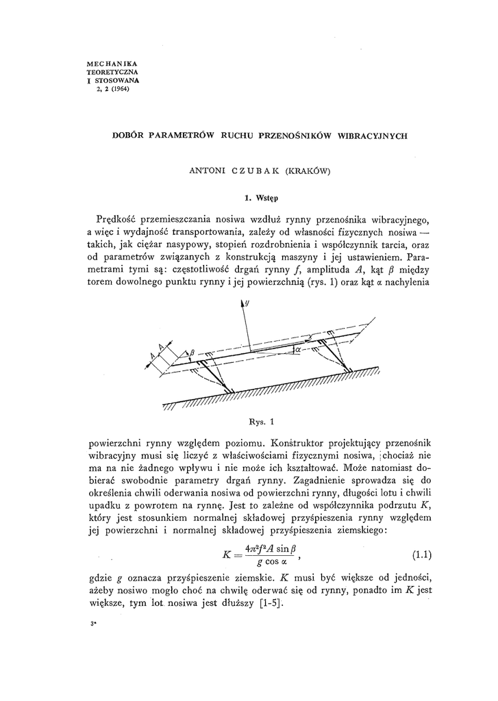 wzoru (1.1) obliczyć czę stotliwość drgań rynny/ oraz amplitudę A Przy okreś lonym K ś rednia prę dkość nosiwa zależy od wielkoś ci amplitudy. Jeż eli np.