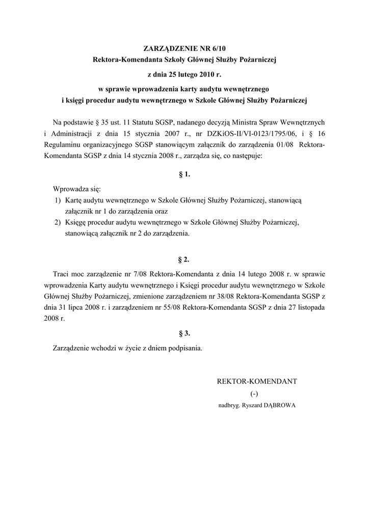 dnia 31 lipca 2008 r. i zarządzeniem nr 55/08 Rektora-Komendanta SGSP z dnia 27 listopada