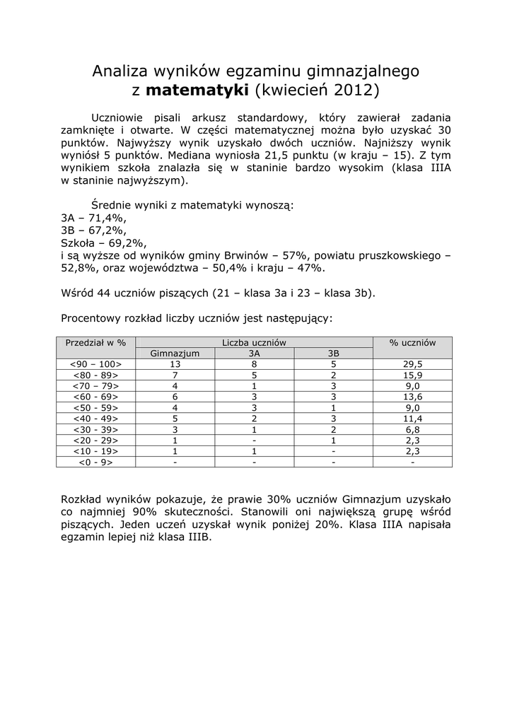 Analiza wyników egzaminu gimnazjalnego z matematyki