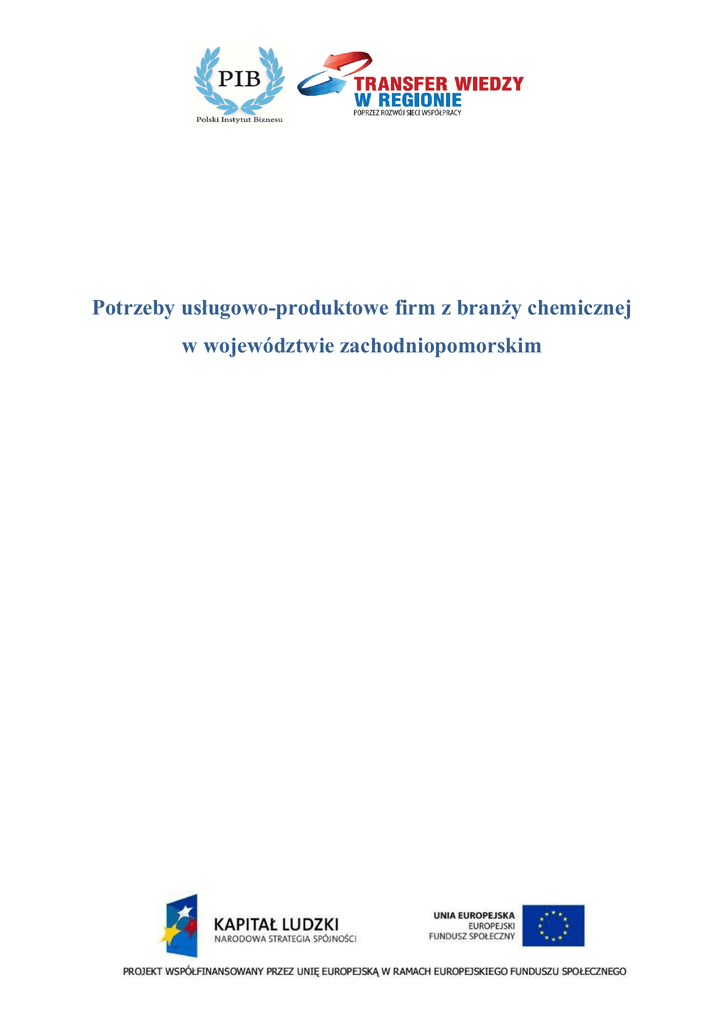 Potrzeby usługowo-produktowe firm z branży chemicznej w województwie zachodniopomorskim Opracowanie tematyczne nr 3 dla branży chemicznej Dokument opracowany przez Stowarzyszenie Polski Instytut Biznesu Skład zespołu ekspertów: 1. Mariusz Bryła - Kierownik Zespołu 2. Joanna Majewska - Lenarcik 3. Grzegorz Ocieczek 4. Małgorzata Okularczyk 5. Maria Wyra 2|Strona Opracowanie tematyczne nr 3 dla branży chemicznej Spis treści 1. Wyniki badań ankietowych dla branży chemicznej ............................................................ 4 2. Zapotrzebowanie na produkty i usługi outsourcingowe branży chemicznej w województwie zachodniopomorskim w opinii respondentów. ................................................ 18 2.1 Marketing....................................................................................................................... 19 2.2 Branżowe produkty rozwojowe ..................................................................................... 20 2.3 Szkolenia i warsztaty ..................................................................................................... 21 3. Plan szkoleń obejmujący zakres usług i produktów marketingowo-promocyjnych dla przedsiębiorstw chemicznych z województwa zachodniopomorskiego. ................................. 24 4. Zapotrzebowanie przedsiębiorstw branży chemicznej na usługi outsourcingowe w województwie zachodniopomorskim i współpraca z firmami consultingowymi. ................... 36 4.1 Outsourcing branży chemicznej .................................................................................... 36 4.2 Outsourcing marketingu ................................................................................................ 39 4.3 Outsourcing doradczy .................................................................................................... 41 4.4 Outsourcing finansowy .................................................................................................. 41 4.5 Bieżące usługi outsourcingowe z jakich korzystają przedsiębiorstwa z branży spożywczej w województwie zachodniopomorskim ............................................................ 44 4.6 Przykładowe koszty outsourcingu ................................................................................ 47 4.7 Przedsięwzięcia branżowe ............................................................................................ 48 Podsumowanie ......................................................................................................................... 51 Bibliografia............................................................................................................................... 52 3|Strona Opracowanie tematyczne nr 3 dla branży chemicznej 1. Wyniki badań ankietowych dla branży chemicznej Celem badania przedsiębiorstw branży chemicznej z województwa zachodniopomorskiego było poznanie ich potrzeb usługowo-produktowych oraz poznanie możliwości eksportowych na rynkach europejskich. Specyfika branży chemicznej zmusza przedsiębiorców do wykorzystywania zaawansowanych technologii oraz innowacyjnych rozwiązań, które zapewnić mają bezpieczeństwo, efektywność i spełnienie wymagań jakościowych. Ze względu na fakt, że przemysł chemiczny, jest jednym z najistotniejszych gałęzi przemysłu przetwórczego, stanowiący około 10% wartości sprzedaży przemysłu ogółem w Polsce1, przeprowadzone badanie powinno przyczynić się do jego rozwoju również w województwie zachodniopomorskim. Z przeprowadzonych badań wynika, że przedsiębiorstwa z województwa zachodniopomorskiego w większości nie podejmują szerszych działań w celach eksportowych i nie wiedzą, w jaki sposób uzyskać wsparcie w tej dziedzinie. Wyniki wszystkich przeprowadzonych analiz z badania branży chemicznej w województwie zachodniopomorskim zostaną przedstawione w formie graficznej w dalszej części opracowania. W badaniu wzięło udział dziesięć przedsiębiorstw chemicznych z województwa zachodniopomorskiego. Wśród badanych przedsiębiorstw chemicznych z województwa zachodniopomorskiego większość charakteryzuje się dużym doświadczenie w branży, gdyż średnia liczba lat działalności wynosi 11-15 lat. Wyniki te przedstawia poniższy wykres. 1 http://decyzje-it.pl/centrum-wiedzy/inne-klasy/artykuly/zintegrowane-zarządzanie-w-przemysle-chemicznymi-farmaceutycznym-cz-1-2.html 4|Strona Opracowanie tematyczne nr 3 dla branży chemicznej Wykres 1: Lata funkcjonowania kcjonowania zachodniopomorskiego na rynku. firm bran branży chemicznej z województwa 100% 90% 80% 80% 70% 60% Mniej niż rok 50% od roku do 2 lat od 3 do 5 lat 40% od 6 do 10 lat 30% 20% od 11 do 15 lat 10% więcej 10% 10% 0% 0% średnia 11-15 11 lat 0% 0% Mniej od roku niż rok do 2 lat od 3 do od 6 do od 11 5 lat 10 lat do 15 lat więcej średnia 11-15 lat Źródło: Opracowanie pracowanie własne na podstawie przeprowadzonych badań. bada Przyglądając się powyższemu ższemu wykresowi dotyczącemu dotycz lat funkcjonowania na rynku firm z branży chemicznej można żna zauważyć, zauwa że najwięcej przedsiębiorstw ębiorstw zadeklarowało, że działają na rynku więcej ę niżż 15 lat (80%). Firm, które na rynku funkcjonują funkcjonuj mniej niż rok jest zaledwie 10%, tyle samo jest również równie przedsiębiorstw ze stażem em od lat 6 do 10. Pomimo że żaden aden z respondentów nie zaznaczył przedziału 11-15 15 lat, jako przedziału charakteryzującego charakteryzuj długość funkcjonowania firmy na rynku, rynku, to w przeliczeniu na wszystkich ankietowanych ten przedział stanowi średni redni staż przedsiębiorstwa przedsi z branżyy chemicznej. Może Moż mieć to istotne znaczenie w przełożeniu żeniu na całą populację firm chemicznych z zatrudnionych na województwa zachodniopomorskiego. Kolejny wykres przedstawia liczb liczbę pracowników w w przedsiębiorstwach iorstwach z branży