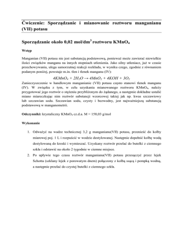 Ćwiczenie: Sporządzanie i mianowanie roztworu manganianu (VII