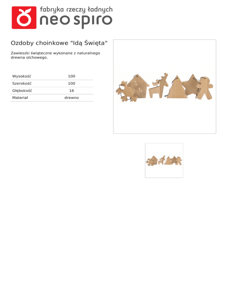 Ozdoby choinkowe "Idą Święta" Zawieszki świąteczne wykonane z naturalnego drewna olchowego. Wysokość 100 Szerokość 100 Głębokość 16 Materiał Powered by TCPDF (www.tcpdf.org) drewno