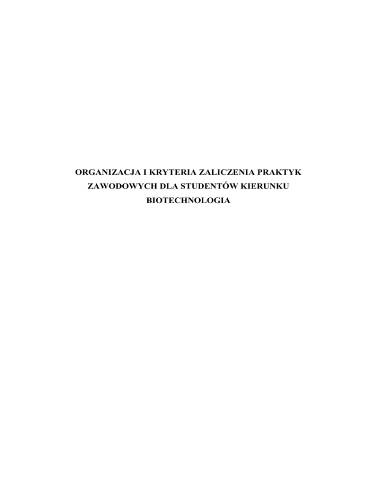 organizacja i kryteria - Samodzielna Katedra Biotechnologii i