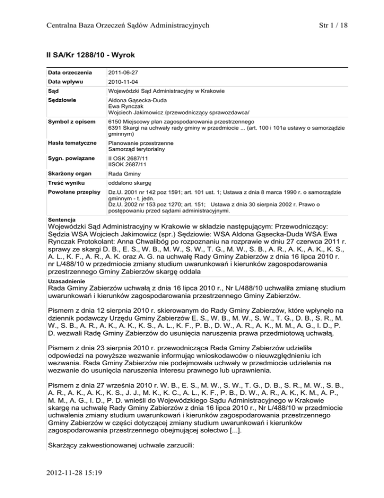 II SA/Kr 1288/10 - Wyrok WSA w Krakowie