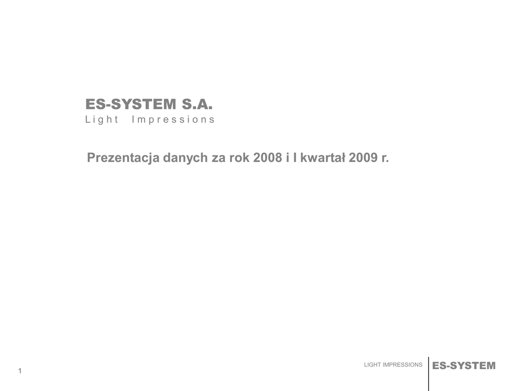 Niniejsza prezentacja została przygotowana przez spółkę ES-SYSTEM S.A. ("Spółka").
