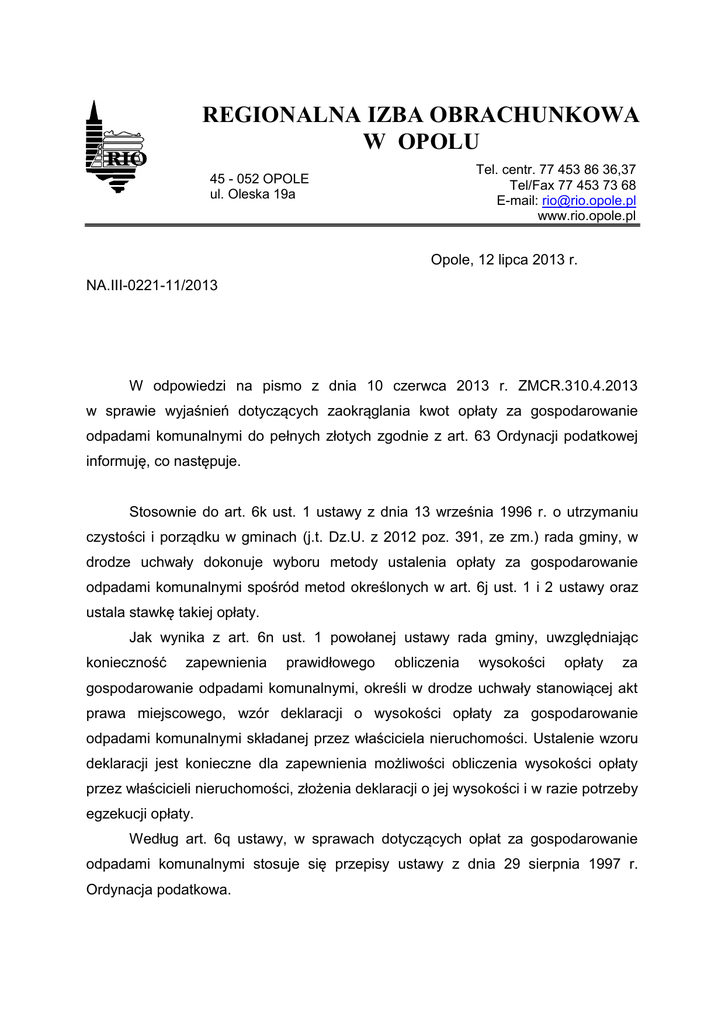pismo 2013-07-12 - Regionalna Izba Obrachunkowa w Opolu