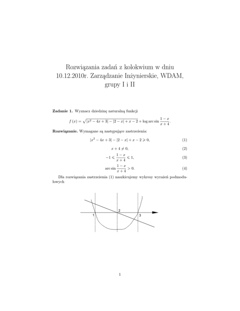 Zadanie 1. Wyznacz dziedzinę naturalną funkcji