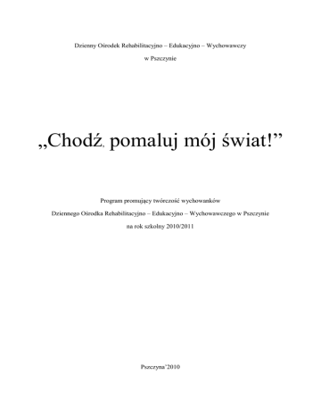 Dzienny Ośrodek Rehabilitacyjno – Edukacyjno – Wychowawczy w Pszczynie „Chodź, pomaluj mój świat!” Program promujący twórczość wychowanków Dziennego Ośrodka Rehabilitacyjno – Edukacyjno – Wychowawczego w Pszczynie na rok szkolny 2010/2011 Pszczyna’2010 Wstęp Człowiek osiąga spokój, Gdy tworzy bez przerwy; Nie mając mądrości świat roślin, Chce kwitnąć o każdej porze. Życiu człowieka, który tworzy, Towarzyszy jakby radosne bicie dzwonów... /A. Honegger/ Praca edukacyjna i terapeutyczna w Ośrodku podczas zajęć edukacyjno – terapeutycznych i rewalidacyjno – wychowawczych jest ukierunkowana na rozwój każdego dziecka, poprzez zdobywanie doświadczenia: manualnego, kinestetycznego, sensorycznego, wyobrażeniowego, emocjonalnego. Radość tworzenia jest dla dziecka zawsze przyjemnym przeżyciem. Zdolność do tworzenia czegoś własnymi rękami daje wychowankom wiele zadowolenia. Dla dzieci z ograniczonymi zdolnościami intelektualnymi terapia przez sztukę może stać się żywym, zrozumiałym doświadczeniem. Może pobudzić je do aktywności i emocjonalnego zaangażowania się do tego co robią i przyczynić się do lepszego funkcjonowania w społeczności. Zajęcia plastyczne odgrywają w życiu dziecka dużą rolę. Pozwalają wychowankom na utrwalanie zdobytej wiedzy, budzą zainteresowania otaczającym światem, umożliwiają rozwój wyobraźni, spostrzegawczości, pomysłowości, pozwalają wyrażać emocje poprzez sztukę. Celem programu „Chodź pomaluj mój świat” jest promowanie twórczości wychowanków Dziennego Ośrodka Rehabilitacyjno – Edukacyjno – Wychowawczego w Pszczynie. Poniżej przedstawiam część teoretyczną na temat niepełnosprawności oraz twórczości osób niepełnosprawnych. Druga część zawiera cele i planowany przebieg programu „Chodź pomaluj mój świat”. Kolejny rozdział to sprawozdanie z realizacji programu. Rozdział I Pojęcie niepełnosprawności intelektualnej Osoby niepełnosprawne to takie, których sprawność fizyczna, psychiczna lub umysłowa trwale lub okresowo utrudnia, ogranicza lub uniemożliwia życie codzienne, naukę, pracę oraz pełnienie ról społecznych, zgodnie z normami prawnymi i zwyczajowymi mają prawo do niezależnego, samodzielnego życia oraz nie mogą podlegać dyskryminacji 1. „Pojęcie niepełnosprawności obejmuje różne ograniczenia funkcjonalne jednostek ludzkich w każdym społeczeństwie, wynikające z uszkodzenia zdolności wykonywania jakiejś czynności w sposób uważany za normalny, typowy dla ludzkiego życia. Ograniczenia te mogą mieć charakter stały lub przejściowy, całkowity lub częściowy, mogą dotyczyć sfery sensorycznej, fizycznej i psychicznej”2. „Przez niedorozwój umysłowy rozumie się niższą od przeciętnej ogólną sprawność intelektualną, która powstała w okresie rozwojowym i jest związana z jednym lub więcej zaburzeniami w zakresie: dojrzewania, uczenia się i społecznego przystosowania”3. J. Kostrzewski definiuje upośledzenie umysłowo jako: „istotnie niższy od przeciętnego, co najmniej o dwa odchylenia standardowe, poziom funkcjonowania intelektualnego o charakterze globalnym wraz z zaburzeniami w zakresie dojrzewania, uczenia się i przystosowania społecznego, spowodowane przez czynniki genetyczne i egzogeniczne na podłożu względnie trwałych zmian w ośrodkowym układzie nerwowym”4. Światowa Organizacja Zdrowia upośledzenie umysłowe definiuje jako „istotne obniżenie ogólnego poziomu funkcjonowania intelektualnego oraz trudności w zachowaniu przystosowawczym, występujące przed 18 rokiem życia”5. Pojęcie upośledzenie umysłowe jest często zamiennie używane z takimi pojęciami jak: niedorozwój umysłowy, zahamowanie rozwoju umysłowego, obniżenie sprawności 1 Uchwała Sejmu RP z dnia 1.08.1997 r. Karta Praw Osób Niepełnosprawnych. W. Dykcik (red.): Pedagogika specjalna. Poznań 2001, s. 15. 3 A.B. Clarke, A.M. Clarke: Upośledzenie umysłowe. Nowe poglądy. Warszawa 1969, s. 69. 4 J. Kostrzewski: Podstawowe wiadomości o upośledzeniu umysłowym. (W:) K. Kirejczyk (red.): Upośledzenie umysłowe-pedagogika. Warszawa 1981, s.36. 5 za: I. Obuchowska: Dzieci upośledzone umysłowo w stopniu lekkim. (W:) I. Obuchowska (red.): Dziecko niepełnosprawne w rodzinie. Warszawa 1995, s. 206. 2 intelektualnej, a także ostatnio zaburzenia w uczeniu się. Jednakże istnieje tendencja do preferowania terminu niepełnosprawność umysłowa lub intelektualna6. Tabela 1 Klasyfikacja upośledzenia umysłowego wg IX Rewizji Międzynarodowej Klasyfikacji Chorób, Urazów i Przyczyn Zgonów, obowiązująca od 1.01.1980 roku Odchylenie standardowe Stopień upośledzenia Iloraz inteligencji wg Wechslera ≥ -1 Rozwój niższy niż przeciętny (dolna granica normy) 85-110 Od –1 do –2 Rozwój niższy niż przeciętny (górna granica normy) 70-84 Od –2 do –3 Niepełnosprawność w stopniu lekkim 55-69 Od –3 do –4 Niepełnosprawność umysłowa w stopniu umiarkowanym Od –4 do –5 Niepełnosprawność w stopniu znacznym umysłowa Niepełnosprawność w stopniu głębokim umysłowa < -5 umysłowa 40-54 25-39 0-24 Źródło: J. Wyczesany: Pedagogika osób z lekkim upośledzeniem umysłowym. M. Bogdanowicz porównuje symptomy różnych stopni niepełnosprawności intelektualnej. Tabela 2 Symptomatologia stopni upośledzenia umysłowego Stopnie Upośledzenie w stopniu lekkim Upośledzenie w stopniu umiarkowanym Upośledzenie w stopniu znacznym Upośledzenie w stopniu głębokim Procesy instrumentalne Procesy orientacyjne: spostrzeganie 6 Sprawność spostrzegania zasadniczo w normie. Wolny tok spostrzegania. Spostrzeżenia nieprecyzyjne, trudności z wyróżnianiem Obniżona sprawność spostrzegania. Spostrzega cechy konkretne, nie odróżnia cech ważnych. Znacznie obniżona sprawność i szybkość spostrzegania. Spostrzeżenia niedokładne. Trudności Głęboko zaburzona sprawność spostrze