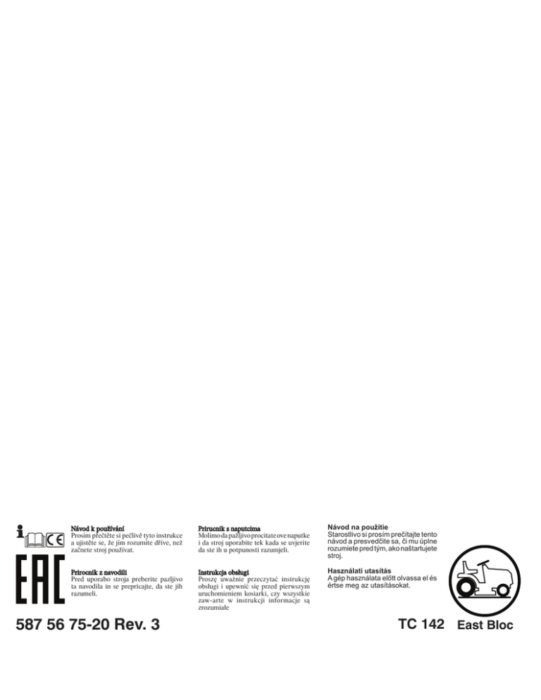 Datum kupovine, model, tip i serijski broj kosilice. Uvijek uporabljajte originalne rezervne dijelove. Za popravke strojeva u jamstvenom roku, javite se u vašu najbližu ovlaštenu servisnu radionicu