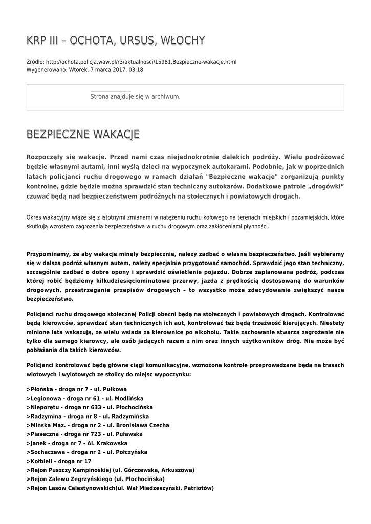 KRP III – OCHOTA, URSUS, WŁOCHY BEZPIECZNE WAKACJE