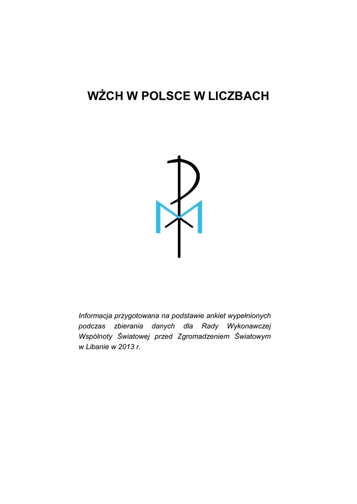 WŻCH W POLSCE W LICZBACH Informacja przygotowana na podstawie ankiet wypełnionych podczas zbierania danych dla Rady Wykonawczej Wspólnoty Światowej przed Zgromadzeniem Światowym w Libanie w 2013 r. (W statystykach brakuje danych z Torunia, skąd nie nadeszły wypełnione ankiety a jedynie ogólna informacja o liczbie kobiet i mężczyzn. Brakuje też informacji o jednej prewspólnocie w Poznaniu.) DANE OGÓLNE osoby na liście liczba osób we wspólnotach* liczba osób w prewspólnotach* liczba członków* liczba kandydatów* liczba sympatyków* osoba zawieszona * Bez Torunia liczba % razem 459 100% liczba kobiet 355 77% liczba mężczyzn 104 23% razem 356 100% liczba kobiet 272 76% liczba mężczyzn 84 24% razem 79 100% liczba kobiet 64 81% liczba mężczyzn 15 19% razem liczba kobiet liczba mężczyzn razem liczba kobiet liczba mężczyzn razem liczba kobiet liczba mężczyzn 396 100% 304 92 28 77% 23% 100% 25 89% 3 11% 10 100% 6 60% 4 40% liczba kobiet 1 WŻCh w Polsce składa się obecnie z 13 wspólnot lokalnych, przy czym wspólnota Trójmiejska grupuje wspólnoty z Gdańska i Gdyni, a Poznańska z Poznania i Murowanej Gośliny. Ogółem spotyka się 55 grup, w tym 10 prewspólnot. W tabeli poniżej nie wyszczególniono grup z Torunia (brak szczegółowych danych, na potrzeby statystyk założono że są tam 2 wspólnoty i 1 prewspólnota. Również ze względu na brak danych, w tabeli nie odnotowano jednej z prewspólnot z Poznania. 2 wspólnota kobiety mężczyźni razem Bialystok 23 3 26 Arka 8 1 9 prewspólnota bia 6 1 7 Św. Ignacy 9 1 10 Bytom 6 1 7 Seniorzy 6 1 7 Gdańsk 14 4 18 Manresa 9 2 11 Radość 5 2 7 Gdynia 25 3 28 Betania 6 1 7 Góra Tabor 5 1 6 Oremus 6 Pustynia 8 1 9 Kalisz 22 8 30 Duch Święty 9 2 11 Jan Paweł II 7 2 9 Św. Józef 6 4 10 Kraków 8 4 12 Ad Amorem 4 4 8 Adsumus 4 Lublin 43 22 65 Deesis 10 5 15 Effata 2 2 4 Św.Faustyna 10 8 18 W drodze 7 Wspólnota 77 8 2 10 Wspólnota Małżeństw 6 5 11 Łódź 15 5 20 Emaus 4 2 6 Fiat 5 2 7 Rodzina 6 1 7 Piotrków Trybunalski 12 4 16 6 4 7 3 wspólnota kobiety mężczyźni razem Poznań 35 14 49 Betesda 6 3 9 Jutrzenka 6 6 12 Płomień 9 1 10 Pobiedziska 3 2 5 prewspólnota poz 11 2 13 Murowana Goślina 16 4 20 Światło 11 Uzdrowienie 5 Radom 6 6 Reszta Izraela 6 6 Szczecin 13 1 14 prewspólnota szcz 8 1 9 Sykomora 5 Toruń 19 5 24 Warszawa 96 26 122 Droga 7 1 8 Effata 7 3 10 Emaus 3 3 6 Galilea 9 Magis 3 4 7 prewspólnota waw 8 3 11 Słowo 9 1 10 Św. Andrzej Bobola 8 Św. Jan 8 1 9 Św. Józef 5 2 7 Św. Juda Tadeusz 3 3 6 Św. Paweł 5 1 6 Św. Rodzina 9 Św. Szczepan 4 2 6 Św. Szymon Cyrenejczyk 3 1 4 Znak 5 1 6 353 104 457 Suma końcowa 11 4 9 5 9 8 9 4 PŁEĆ 77% osób we Wspólnocie stanowią kobiety. Największy odsetek mężczyzn mają wspólnoty w Lublinie Krakowie i Poznaniu. W Radomiu, gdzie jest tylko jedna grupa, jest 100% kobiet. kobiety mężczyźni 353 RAZEM 104 23 Bialystok 3 6 Bytom 1 14 Gdańsk 4 25 Gdynia 3 22 Kalisz 8 Kraków 8 4 Lublin 43 22 15 Łódź 5 16 Murowana Goślina 4 12 Piotrków Trybunalski 4 35 Poznań 14 6 Radom 13 Szczecin 1 Toruń 19 5 Warszawa 96 26 0% 20% 40% 60% 80% 100% 5 WIEK mniej niż 26 lat 2% Wiek osób w WŻCh więcej niż 60 lat 22% 26-35 lat 16% 36-45 lat 20% 46-60 lat 40% Na wykresie znalazło się najwięcej koloru niebieskiego odpowiadającego przedziałowi wiekowemu 46-60 lat, oraz fioletowego dla przedziału ponad 60 lat. Największy odsetek osób młodych mają wspólnoty w Lublinie i Poznaniu. Nieźle jest też pod tym względem w Warszawie. Niektóre wspólnoty są wyraźnie zaawansowane wiekowo (dominacja fioletu i niebieskiego): Bytom, Gdańsk, Piotrków. Największy odsetek osób po 60 roku życia ma wspólnota Łódzka. Rozkład mężczyźni / kobiety w grupach wiekowych pokazuje, że największy odsetek mężczyzn (powyżej 30%) obecny jest w dwóch najmłodszych grupach: poniżej 26 lat i 26-35 lat. Najbardziej sfeminizowana jest grupa 36-45 (niecałe 17% mężczyzn). 6 mniej niż 26 lat 26-35 lat 36-45 lat 46-60 lat więcej niż 60 lat bd Bialystok Bytom wiek osób we wspólnocie Gdańsk Gdynia Kalisz Kraków Lublin Łódź Murowana Goślina Piotrków Trybunalski Poznań Radom Szczecin Toruń Warszawa 0 20 40 60 80 100 120 140 liczba osób mężczyźni kobiety 100% 90% 80% 70% 60% 6 47 3 19 mniej niż 26 lat 26-35 lat 89 68 127 50% 40% 30% 20% 10% 71 15 40 36-45 lat 46-60 lat 0% więcej niż 60 lat wiek osób we wspólnocie 7 STAŻ Staż we wspólnocie mniej niż 2 lata 13% ponad 15 lat 31% 2-5 lat 27% 10-15 lat 13% 6-10 lat 16% Ta dana pokazuje dynamikę przyrostu wspólnoty. Dominują osoby z długim stażem we wspólnocie (ponad 15 lat). Widać jednak, że w ciągu 10 lat, od 1998 r. do 2007 (kolory niebieski i czerwony) doszło 29% osób będących obecnie we wspólnocie, a w ciągu ostatnich 5 lat (żółty i zielony) doszło 40% osób obecnie będących we wspólnocie. Jest to pozytywny obraz, choć należy się liczyć z tym, że z osób, które mają teraz krótki staż w WŻCh część zrezygnuje. Procentowo, największy przyrost osób nowych obserwowany jest w nowych wspólnotach: Poznańskiej i w Murowanej Goślinie. Przy czym w prezentowanych danych nie ma informacji o jednej z poznańskich prewspólnot, więc nie ma jej w tych statystykach. Nieźle też wygląda sytuacja Białegostoku, Lublina i Warszawy. Warto zauważyć, że po zastoju w latach 2007-2010 przybyły nowe osoby w Gdańsku. Niepokojący jest brak nowych osób w Bytomiu, Krakowie, Łodzi i Piotrkowie. Największy odsetek mężczyzn dołączył do wspólnoty we wcześniejszych latach jej istnienia. Wśród osób będących ponad 15 lat i osób będących we wspólnocie 10-15 lat, jest 27% mężczyzn. Wśród osób, które doszły między 2003 a 2008 rokiem jest tylko 12% mężczyzn, A w ostatnich latach znów dołączało ich więcej (wśród osób ze stażem do 2 lat jest 27% mężczyzn). 8 mniej niż 2 lata 2-5 lat 6-10 lat 10-15 lat ponad 15 lat bd Bialystok By