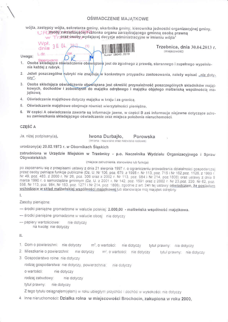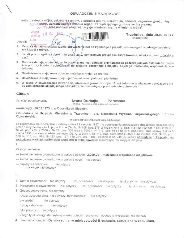 oŚWiadczenie majątkowe doiyczy majątku W krajU iza graIicą,