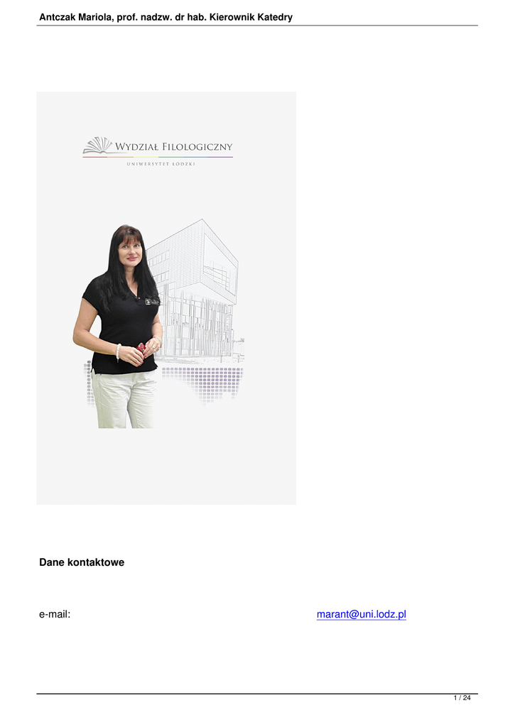 Antczak Mariola, prof. nadzw. dr hab. Kierownik Katedry