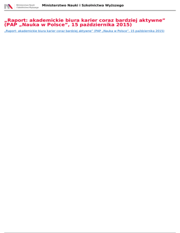 Ministerstwo Nauki i Szkolnictwa Wyższego „Raport: akademickie biura karier coraz bardziej aktywne” (PAP „Nauka w Polsce”, 15 października 2015) „Raport: akademickie biura karier coraz bardziej aktywne” (PAP „Nauka w Polsce”, 15 października 2015) Powered by TCPDF (www.tcpdf.org)