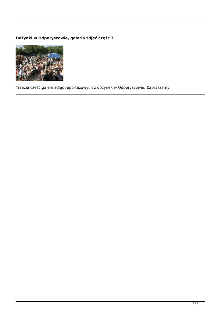 Dożynki w Odporyszowie, galeria zdjęć część 3 Trzecia część galerii zdjęć reportażowych z dożynek w Odporyszowie. Zapraszamy. 1/1 Powered by TCPDF (www.tcpdf.org)
