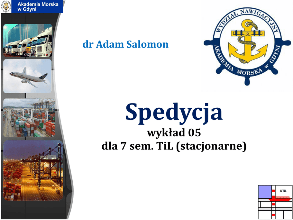 dr Adam Salomon Spedycja wykład 05 dla 7 sem. TiL (stacjonarne) Spedycja Podstawowy podręcznik do ćwiczeń i wykładów. • A. Salomon, Spedycja - teoria, przykłady, ćwiczenia, Wyd. AM, Gdynia 2011. dr Adam Salomon, Katedra Transportu i Logistyki (WN AM w Gdyni) 2 SPEDYCJA program wykładu 05 dla 7 sem. TiL Przewoźnicy (armatorzy) morscy i ich przedstawiciele (agenci); NVOCC; Przewoźnicy samochodowi i ich przedstawiciele (agenci); Przewoźnicy kolejowi i ich przedstawiciele (agenci). Przewoźnicy lotniczy i ich przedstawiciele (agenci); Przewoźnicy śródlądowi i ich przedstawiciele (agenci); Przedsiębiorstwa przeładunkowe i sztauerskie; Przedsiębiorstwa składowe; Urzędy celne i izby celne; Inne firmy specjalistyczne, których działalność jest związana ze specyfiką danego ładunku. dr Adam Salomon, KTiL, WN AM w Gdyni 3 Dostęp do rynku spedycyjnego – wcześniej • Ustawa o działalności gospodarczej obowiązująca do 2001 roku, stworzyła bardzo liberalne warunki dostępu podmiotów do rynku spedycyjnego, nie ograniczone żadnymi koncesjami ani obostrzeniami. • Firmę spedycyjną mógł założyć każdy. • Jedyny przypadek, kiedy spedytor w Polsce musiał ubiegać się o koncesję, występował wówczas, gdy chciał on jednocześnie spełniać funkcje agenta celnego. dr Adam Salomon, KTiL, WN AM w Gdyni 4 Dostęp do rynku spedycyjnego – obecnie • Obecnie obowiązująca Ustawa prawo działalności gospodarczej z 19 listopada 1999 roku, która weszła w życie 1 stycznia 2001 roku (Dz. U. z 1999 roku, nr 101, poz. 1178), miała daleko idące skutki dla funkcjonowania przedsiębiorstw transportowo-spedycyjnych w Polsce, głównie ze względu na wprowadzenie zasady koncesjonowania działalności (art. 14–26). dr Adam Salomon, KTiL, WN AM w Gdyni 5 Najważniejsze postanowienia Ustawy prawo działalności gospodarczej (1) • Przedsiębiorca może podjąć działalność gospodarczą po uzyskaniu wpisu do rejestru przedsiębiorców (art. 7). • Uzyskania koncesji wymaga wykonywanie działalności gospodarczej [m.in.] w zakresie: transportu lotniczego i kolejowego (art. 14). • Koncesji udziela się na czas oznaczony, nie krótszy niż 2 lata i nie dłuższy niż 50 lat (art. 15). Spedycja dr Adam Salomon, KTiL, WN AM w Gdyni 6 Najważniejsze postanowienia Ustawy prawo działalności gospodarczej (2) • Spedycja Wniosek o udzielenie koncesji powinien zawierać (art. 17): 1. oznaczenie przedsiębiorcy, jego siedzibę i adres; 2. numer w rejestrze przedsiębiorców; 3. określenie rodzaju i zakresu wykonywania działalności gospodarczej, na którą ma być udzielona koncesja; 4. informacje określone w przepisach odrębnych ustaw. dr Adam Salomon, KTiL, WN AM w Gdyni 7 Najważniejsze postanowienia Ustawy prawo działalności gospodarczej (3) • Organ koncesyjny jest uprawniony do kontroli działalności gospodarczej w zakresie (art. 21): 1. zgodności wykonywanej działalności z udzieloną koncesją; 2. przestrzegania warunków wykonywania działalności gospodarczej; 3. obronności lub bezpieczeństwa państwa, ochrony bezpieczeństwa lub dóbr osobistych obywateli lub innego ważnego interesu publicznego. Spedycja dr Adam Salomon, KTiL, WN AM w Gdyni 8 Najważniejsze postanowienia Ustawy prawo działalności gospodarczej (4) Organ koncesyjny cofa koncesję w przypadku, gdy (art. 22): 1. wydano prawomocne orzeczenie zakazujące przedsiębiorcy wykonywania działalności gospodarczej objętej koncesją; 2. przedsiębiorca nie podjął działalności objętej koncesją mimo wezwania organu koncesyjnego lub zaprzestał wykonywania działalności gospodarczej objętej koncesją; 3. występuje zagrożenie obronności i bezpieczeństwa państwa lub innego ważnego interesu publicznego. Spedycja dr Adam Salomon, KTiL, WN AM w Gdyni 9 Kontrahentów spedytora portowo-morskiego można podzielić na dwie podstawowe grupy podwykonawcy związani bezpośrednio z organizacją łańcucha transportowego Spedycja podwykonawcy związani pośrednio z organizacją łańcucha transportowego dr Adam Salomon, KTiL, WN AM w Gdyni 10 Główni podwykonawcy (kontrahenci spedytora) związani bezpośrednio z organizacją łańcucha transportowego przewoźnicy (armatorzy) morscy i ich przedstawiciele (agenci) przewoźnicy samochodowi i ich przedstawiciele (agenci) Spedycja przewoźnicy lotniczy i ich przedstawiciele (agenci) przewoźnicy śródlądowi i ich przedstawiciele (agenci) przewoźnicy kolejowi i ich przedstawiciele (agenci) dr Adam Salomon, KTiL, WN AM w Gdyni 11 Główni podwykonawcy (kontrahenci spedytora) związani pośrednio z organizacją łańcucha transportowego zarządy portów morskich i spółki portowe świadczące usługi na rzecz ładunku (przeładunek, składowanie) zarządy portów śródlądowych i spółki portowe świadczące usługi na rzecz ładunku (przeładunek, składowanie) zarządy portów lotniczych i spółki portowe świadczące usługi na rzecz ładunku (przeładunek, składowanie) Spedycja dr Adam Salomon, KTiL, WN AM w Gdyni inne firmy specjalistyczne, których działalność jest związana ze specyfiką danego ładunku firmy controllingowe firmy prawnicze towarzystwa ubezpieczeniowe 12 Przewoźnicy (armatorzy) morscy i ich przedstawiciele (agenci) (1) • W transporcie morskim podmiot zawierający umowę przewozu z przewoźnikiem nazywa się frachtującym (freighter). W przypadku transportu ładunku odbywającego się w żegludze nieregularnej zawierającego umowę nazywa się czarterującym (charterer), natomiast podmiot zawierający umowę w żegludze regularnej – bukującym (shipper). Spedycja dr Adam Salomon, KTiL, WN AM w Gdyni 13 Przewoźnicy (armatorzy) morscy i ich przedstawiciele (agenci) (2) • Frachtujący zawiera umowę o przewóz ładunku z właścicielem statku – armatorem (owner, shipowner), albo z przewoźnikiem (carrier), podejmującym się odpłatnych przewozów ładunków na swój rachunek. • Przewoźnik nie musi być