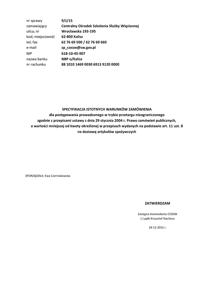 nr sprawy 9/ż/15 zamawiający Centralny Ośrodek Szkolenia Służby