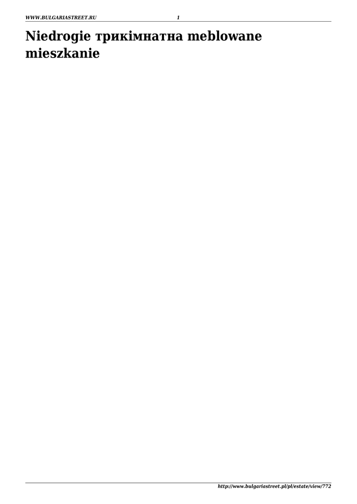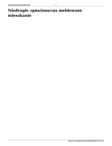 WWW.BULGARIASTREET.RU 1 Niedrogie трикімнатна meblowane mieszkanie http://www.bulgariastreet.pl/pl/estate/view/772 WWW.BULGARIASTREET.RU 2 Cena 25387.00 EUR Numer: 772 http://www.bulgariastreet.pl/pl/estate/view/772 WWW.BULGARIASTREET.RU 3 Cena za m2: EUR Typ transakcji: Sprzedaż nieruchomości Typ: Niedrogie mieszkaniа Region: Słoneczny Brzeg Stan : Wprowadzona do eksploatacji Roczne utrzymanie: 10 euro/mkw. Piętro: 1 Sypialnie: 2 Łazienka: 1 Charakterystyka nieruchomości Proponujemy do sprzedaży трикімнатну meblowane mieszkanie w kompleksie z dużym przypilnowanym terytorium z rozwiniętą wewnętrzną infrastrukturą, który znajduje się w centralnej części kurortu Słoneczny Brzeg do 800 m od plaży. plac 65.26 кв.м. Charakterystyka mieszkania W mieszkaniu jest - kuchnia z wbudowanym kuchennym blokiem i domowym urządzeniem, dwie meblowane sypialnie z klimatyzatorami, kąpielowy pokój z sanitarnym węzłem i natryskem, balkon. Podłaczono kablową telewizję i internet. Mieszkanie jest gotowe dla odpoczynku pobyt albo reszta do dzierżawy. Charakterystyka kompleksu Restauracja, Bar, Supermarket, Фитнес, Sauna, Wymiana dewiz, Dziecięce zabawowe placyki, Tenis kort, piłkarskie pole, Internet klub, Centrum piękności, Medyczne centrum, Wypożyczenie samochodów,,Masaż. Główne przewagi: ● ● ● ● Niewysoka cena! Duże terytorium! Rozwinięta wewnętrzna infrastruktura! Meble i domowe urządzenie! Nie bierzemy komisję do naszych klientów! Infrastruktura ● ● ● ● ● ● ● ● ● ● ● ● ● Miejsca parkingowe Placyk dla dzieci Klimatyzacja Winda Pomóc medyczna Telefon Recepcja Sklep Restauracja Silownia Bar Bar lobby Basen odkryty http://www.bulgariastreet.pl/pl/estate/view/772 WWW.BULGARIASTREET.RU ● ● ● ● ● ● ● ● ● ● ● ● ● ● ● ● 4 Biliard Tenis stolowy Pole golfowe Ochrona Pralka Internet Telewizja kablowa Gabinet medyczny Studium urody Kort tenisowy Elektrczność Woda Okna PVC Meble Przypilnowane terytorium Barbecue Informacje o regionie Największy kurort bułgarskiego czarnomorskiego nadbrzeża - Słoneczny Brzeg, rozmieszczony w zatoce między prastarym miastem Несебром i Świętym Własem. Międzynarodowy port lotniczy m. Burgas znajduje się na odległości 35 km, a port lotniczy Варны - do 95 km Klimat Słoneczny brzeg różni się sprzyjającym śródziemnomorskim klimatem. Lato jest słoneczne i gorące, średnia temperatura w lipcu składa 22-23 stopniów Celsjusza. Średnia temperatura morskiej wody 20-26 stopniów Celsjusza. W okres z maja miesiąca po października włącznie ilość słonecznych godzin istnieje więcej 1700. Słonecznemu brzegowi jest nadany Błękitny sztandar - międzynarodowa nagroda, która potwierdza, że woda i plaże odpowiadają najwyższym standardom i przydatne dla bezpiecznej kąpieli i odpoczynku. Plaże Słoneczny Brzeg ma w rozporządzeniu naprawdę zbytkowną plażę z drobnym złocistym piaskiem i bezpiecznym pochyłym zachodem w morze. Czysty, współcześnie wyposażony i taki, że ochrania się plaża jest prawdziwą chlubą kurortu. Na plaży są możliwości dla serfingu, przejażdżka na ślizgaczach i wodnych rowerach. Tu są zbudowane współczesne tenisowe korty. Skoki z spadochronem i wierzchowa jazda - dla Waszego zadowolenia! Infrastruktura Słoneczny brzeg ma doskonale opracowaną infrastrukturę. W tym kurorcie są wszystkie warunki dla rodzinnego, dziecięcego i młodzieżowego odpoczynku. Duża ilość parkowych terytoriów, co zadrzewia, ze strefami odpoczynku i dziecięcymi placykami jest bezsprzeczną przewagą kurortu. W kompleksie są trenażery sale, sauny, pływalnie dla dorosłych i dzieci, masażowe gabinety, salony piękności i medyczne centra. Duża ilość rozmaitych restauracji i kawiarń, co proponuje internacjonalną i bułgarską kuchnię, poza wątpliwością, ucieszy smakoszy. Młodzież we właściwy sposób oceni nocne kluby, modne dyskoteki, varietesy i bary z żywą muzyką. Dla amatorów aktywnego odpoczynek i sportu są stworzone liczne warunki. http://www.bulgariastreet.pl/pl/estate/view/772 WWW.BULGARIASTREET.RU 5 http://www.bulgariastreet.pl/pl/estate/view/772 WWW.BULGARIASTREET.RU 6 Kontakty Agencja "Ulica Bułgarska" (Bulgaria Street Ltd) http://www.bulgariastreet.pl/pl/estate/view/772 WWW.BULGARIASTREET.RU 7 Bułgaria m. Burgas, 8000 ul. Mitropolit Simeon 3 Strona: www.bulgariastreet.ru Tel: + 359 894 51 50 51 Tel: + 48 223 906 334 Mail: [email protected] Mail: [email protected] Skype: bulstreet http://www.bulgariastreet.pl/pl/estate/view/772