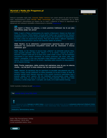 Wywiad z MaNą dla Progames.pl Data publikacji : 05.01.2011 Ocena: 4.7/5 (3) Dobrych wywiadów nigdy dość. Grzesiek "MaNa" Komincz tym razem dostał się pod ostrzał bardzo wielu niesztampowych pytań Michała "WilQ" Kamockiego. Jeśli chcecie dowiedzieć się co MaNa odpowiedziałbym podrywającej go Azjatce lub co myśli o eSporcie w Polsce to zapoznajcie się z obszernym ale ciekawym wywiadem umieszczonym w serwisie Progames.pl Czy esport w Polsce to zabawa, a może powinno traktować się to już jako dochodową pasję lub pracę? MaNa: E-sport w Polsce, porównywany do e-sportu w Niemczech, Szwecji czy Korei jest po prostu śmieszny. Polska dopiero raczkuje jeżeli chodzi o gry na poziomie pro. Naszym problemem jest to, że mamy od groma dobrych graczy, ale nie potrafimy ich wykorzystać, bo każdy ucieka do zagranicznej drużyny. Poza tym brak lanów z dobrymi nagrodami, organizacji profesjonalnych, jeszcze nam baaardzo daleko do perfekcji. WilQ: Myślisz, że te ułatwienia z grupowaniem ogromnej ilości armii pod 1 hotkeyem czy zaznaczenie wszystkich raxów pod np. klawiszem 5 niszczy skillowość gry? MaNa: Myślę, że tak. Brakuje mi jeszcze tego „plątania” się jednostek podczas bitwy, teraz wszystko jednostki robią same. Klikasz 1 + A na ziemię i wracasz do macro i ekonomii. Czasami nawet jest aż za dużo micro, jeżeli chodzi o tossa i nie ma możliwości macrowania w tym samym momencie, bo musimy przesunąć cały ekran, żeby robić wojsko z warpgatów, a inne rasy zwyczajnie mogą hotkeyami robić wojsko. Forcefieldy, stormy, micro kolosami żeby ich nie stracić, naprawdę ciężko wszystko ze sobą pogodzić, ale to kwestia treningu. WilQ: Trochę sugerujesz, jakby protoss był najcięższą rasą do gry na obecną chwilę... czy tak jest? A może mówisz tak, bo sam grasz tossem? MaNa: Uważam, że najcięższą rasa do ogarnięcia na początek zdecydowanie jest zerg. Queeny, creepy, timingi, podatność na cheesy powodują, że nie jest to łatwe, by dojść do perfekcji, jednak moim zdaniem zerg jest w tym samym momencie najsilniejszą rasą z powodu „spawn larva” queena. Nie ma możliwości przemacrowania zerga, możesz jedynie mieć farta, że zerg nie zrobi kontry na Twoje jednostki. Obecnie mam duże problemy z combo zerga roach + corruptor, ale myślę, ze to nadal kwestia treningu. Całość wywiadu znajduję się pod tym linkiem. Tagi: wywiad, eSport, mana, WilQ, Azjatki Uprasza się osoby kopiujące w całości newsy z naszej witryny na swoje strony lub fora o wstawianie widocznych klikalnych linków, bezpośrednio do pobranego tekstu. W przypadku braku widocznego linku, skopiowanie tekstu uważa się za kradzież własności intelektualnej. Dziękujemy: Administratorzy serwisu. Autor: Filip "KruczoCzarny" Szeląg Data publikacji : 05.01.2011 Liczba wyświetleń tekstu: 2434 Komentarz (7) dodaj komentarz "bo musimy przesunąć cały ekran, żeby robić wojsko z warpgatów, a inne rasy zwyczajnie mogą hotkeyami robić wojsko." z całym szacunkiem, ale nikt nikomu nie zabrania używania zwykłych Gatewayów i nikt nikomu nie nakazuje używania Warp Gateów. Skoro inne rasy znoszą to że jednostki muszą dojść z budynku na pole walki to czemu protossi nie mogą używać zwykłych gejtów wtedy jak chcą produkować wojo nie opuszczając pola walki, a warp gatów w innych sytuacjach kiedy nie utrudnia to walki?~Sickstee 2011/01/05 16:10 Dobre spostrzeżenie. Dziwi mnie też to, że Protossi nie korzystają z Warp Prismów choćby jako mobilnych Pylonów. No i może niektóre osoby na forum zdadzą sobie sprawę, że Zerg rzeczywiście jest najtrudniejszą do opanowania rasą ^^~ IceColdKilla 2011/01/05 16:20 Przy zergu trzeba się dużo namotać z Królowymi, chyba jedyna trudność :)~ElemenT Battlenet Network 2011/01/05 16:37 ~Sickstee masz sporo racji ale nie można też zapominać o tym, że warp gate ma także ostatecznie o 5 sec krótszy czas warpowania jednostki niż zwykły gate, stąd nie ma się co dziwić, że wszyscy używają tego upgrade, nawet kosztem potrzeby powracania na moment do pylon'a i warpowania nowych jednostek w trakcie walki :) e, przepraszam nie 5 a 10 sec :) pozdr~egrimm 2011/01/05 17:07 Element tak ci sie tylko wydaje. widac ze nie grywasz zergiem...~Stork 2011/01/05 17:19 Ja sobię radzę z warpowaniem jednostek ustawiając pod 5 pylon, przy którym chcę warpować jednostki, czy to proxy pylon, czy pylon przy wejściu do bazy. Trzeba się trochę przyzwyczaić, bo w trakcie gry trzeba przestawić czasem nawet kilkanaście razy, ale jak już się przyzwyczaiłem jest to nawet wygodne. Dwa razy wciskam 5, warpuje, dwa razy 1 i spowrotem micruje :D~ramsi 2011/01/05 17:44 dla początkujących to Zerg na pewno jest najtrudniejszy do ogarnięcia. Chociażby przez to, że nic nie wyznacza graczowi rytmu produkcji dronek, sam musi decydować ile ich zrobić i kiedy.~Sulphuriell 2011/01/06 11:46 dodaj komentarz 08.10.2015 Kampania "Szepty o zagładzie" dostępna za darmo (0 komentarzy) 27.09.2015 Kolejni bohaterowie w trybie Sprzymierzonych Dowódców (0 komentarzy) 22.09.2015 Cyfrowe gadżety za udział w BlizzCon 2015 (0 komentarzy) 15.07.2015 Legacy of the Void dostępne w przedsprzedaży! (0 komentarzy) 17.06.2015 Informacje z E3 - prolog kampanii Legacy of the Void (0 komentarzy) 30.05.2015 WCS Europe - sobota (30 maja) 18.00 grupa G - MaNa! (0 komentarzy) 07.05.2015 DreamHack Open France 2015 - już 8 maja - MaNa! (0 komentarzy) 03.05.2015 Na wesoło: postacie E-sportu 50 (0 komentarzy) 03.05.2015 IEM Katowice 2015 - jeszcze raz! (0 komentarzy) 03.05.2015 KeSPA Cup 2015 Season 1 - live! (0 komentarzy) 26.04.2015 Proleague - Top5 gier miesiąca (0 komentarzy) 26.04.2015 CJ Entus wygrywa 2 runde Proleague! (0 komentarzy) 18.04.2015 Wersja beta Legacy of the Void – aktualizacja 2.5.1 (0 komentarzy) 18.04.2015 WCS finals 2015 - galeria (0 komentarzy) 18.04.2015 Omówienie zmian w balansie Legacy of the Void (0 koment