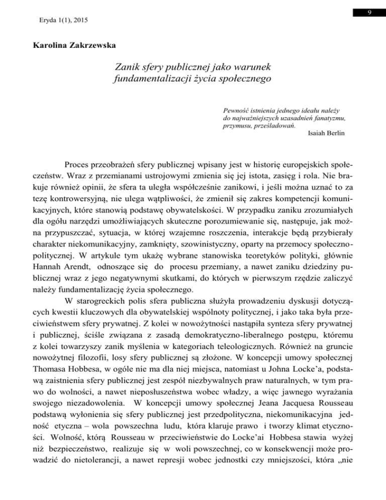 Zanik sfery publicznej jako warunek fundamentalizacji
