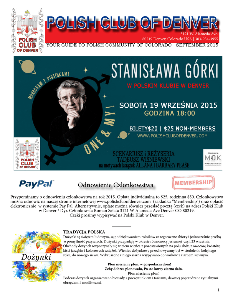 można odnowić na naszej stronie internetowej www.polishclubofdenver.com (zakładka “Membership”) oraz opłacić