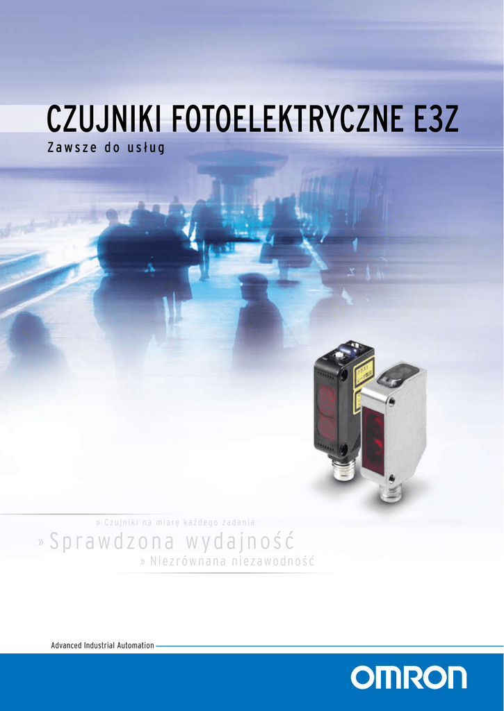 CZUJNIKI FOTOELEKTRYCZNE E3Z Zawsze do usług » C z u j n i k i n a m i a r e˛ k a ż d e g o z a d a n i a » S p ra w d z o n a w yd a j n o ś ć » Niezrównan a n i ezawo d n oś ć Advanced Industrial Automation Rodzina czujników, na której polegaja˛ miliony Rodzina czujników E3Z już teraz należy do grona najbardziej popularnych i udanych na świecie rodzin czujników fotoelektrycznych i cieszy się sprzedażą w liczbie przeszło milion produktów rocznie. Rodzina wciąż się powiększa. W jej skład wchodzi teraz kilka nowych grup produktów przeznaczonych zarówno do zastosowań ogólnych, jak i specjaliss Poza linią produktów ogólnego przeznaczenia przeznaczoną do wszystkich standardowych zastosr sowań w rozbudowanej rodzinie E3Z można także znaleźć zaawansowaną serię czujników z funkcją autodiagnostyki zapobiegawczej, przeznaczoną do wykrywania i ostrzegania użytkownika o problemr mach eksploatacyjnych, zanim doprowadzą do sytuacji krytycznych. Rodzina obejmuje również czujniki laserowe E3Z do precyzyjnego pozycjonowr wania i wykrywania na duże odległości oraz całą gamę czujników ze stali nierdzewnej E3ZM do stycznych — wszystko to dla zaspokojenia rosnących zastosowań, w których higiena i odporność na potrzeb naszych klientów. Oferowana jest wszechss niami. I podobnie, jak w przypadku wszystkich stronna koncepcja czujników do każdego zadania w obrębie systemu automatyki przemysłowej. agresywne warunki są najważniejszymi wymaganr wyrobów firmy Omron, produkcja czujników z rodziny E3Z spełnia najsurowsze normy ekologr giczne i jest zgodna z dyrektywą RoHS. E3Z — uniwersalność zastosowań E3Z — autodiagnostyka zapobiegawcza E3Z — technika laserowa E3ZM — stal nierdzewna Uniwersalność E3Z Duży potencjał, prostota użytkowania Czujniki E3Z ogólnego przeznaczenia stanowią doskonały wybór w przypadku większości zastosowań detekcji fotoelektr trycznej. Czujniki tej serii gwarantują najwyższą wydajność dzięki zintegrowanemu fotoelektrycznemu układowi scalonr nemu o wysokiej czułości, specjalnie zaprojektowanemu przez firmę Omron. Seria jest wyposażona w zaawansowane funkcje, takie jak specjalny algorytm niezawodnego wykrywania w szerr rokim zakresie warunków eksploatacji oraz zaawansowane techniki synchronizacji impulsowej, które skutecznie redukują wrażliwość na światło pochodzące z otoczenia środowiska detekcji. Tak jak wszystkie produkty z rodziny E3Z, seria czujników ogólnego przeznaczenia oferuje swobodę w montażu i podłącr czaniu obejmując wersje ze złączami M12, M8 (4 styki), M8 (3 styki) oraz wersje z kablem do zastosowań w szerokim zakresie środowisk maszynowych. • Zintegrowany fotoelektryczny układ scalony o wysokiej czułości • Prosta i elastyczna obsługa za pomocą przełącznika trybu Light-ON / Dark-ON i potencjometru śrubowego • Minimalne odchylenie osi optycznej zapewniające niezawodne i precyzyjne ustawienie • Kompletna rodzina czujników obejmująca modele typu nadajnik-odbiornik, odbiciowe z reflektorem, modele z odbiciem rozproszonym oraz z eliminacją wpływu tła / regulacją strefy nieczułości od czoła czujnika. TY IK N J U Z PC NA PASYW ACJA W R KONSE CZA B E Z G N O S TY K I A P O B I EG A W Z A I A U T O D G A WC Z E J IE B O P A Z A NA A K TY W A C J A RW E KONS GAWCZA IE B ZAPO Maszyna sprawna Alarm zabrudzenia obiektywu Maszyna niesprawna AW NOŚ ocz ekcji ć det ob iek tyw ji YNY yś ć zd o l tekc A SZ 30 % zd o lno ść de te k cj i 50% de n oś ć ĆM ocz 80% oś zd o l n yś ć ob iek tyw SPR Czujniki E3Z z funkcją autodiagnostyki zapobiegawczej Innowacyjne rozwiązania obniżające całkowity koszt eksploatacji Wykrywanie spadku mocy detekcji spowodowanego przez oznacza, że obiektyw wymaga oczyszczenia podczas następnej zabrudzenie obiektywu realizuje pasywna konserwacja zapobr konserwacji, podczas gdy czujnik wciąż dysponuje przeszło biegawcza, jaką oferują czujniki z funkcją autodiagnostyki 100% rezerwy — nietrudno sobie wyobrazić korzyści z posiadanr zapobiegawczej z serii E3Z, wyposażone w tym celu w wyjście nia takiej informacji! autodiagnostyki. Jeśli sygnał przesyłany do odbiornika staje się niestabilny, do sterownika PLC zostaje wysłany sygnał Dostępne są również wersje z funkcją zatrzymania emisji światr alarmowy, aby umożliwić podjęcie czynności naprawczych, tła (wejście testowe), które zapewniają prawidłowe działanie zanim czujnik przestanie działać. czujnika we wrażliwych zastosowaniach. Wystarczy połączyć te inteligentne czujniki z modułami We/Wy SmartSlice lub sterownr Zapobieganie wadliwemu działaniu na jeszcze wcześniejszym nikami PLC firmy Omron, a maszyna nigdy nie ulegnie awarii! etapie umożliwiają wersje z przełączaniem źródła światła, realizr zujące aktywną konserwację zapobiegawczą. Wyzwalany sygnałr • Wyjście autodiagnostyki/alarmowe łem z modułu sterującego czujnik obniża natężenie światła • Przełączanie natężenia światła wysyłanego do 50% (na przykład podczas testu rozruchowego systemu) i bada spadek natężenia światła odbieranego. Przy pełnym natężeniu odbiornik może nadal odbierać stabilny sygnał, który stanie się niestabilny przy połowie mocy, co • Wejście testowe/zatrzymywania emisji światła • Doskonała współpraca z modułami We/Wy SmartSlice i sterownikami PLC firmy Omron Czujniki E3ZM ze stali Certyfikat nierdzewnej Higieniczne i odporne na detergenty Posiadając wszystkie cechy serii E3Z ogólnego przeznaczenia, czujniki serii E3ZM są dostarczane w wysokiej klasy obudowach ze stali nierdzewnej SUS 316L, wyprodukowanej w specjalnym procesie wtryskiwania metalu. Seria charakteryzuje się wyjątkk kową odpornością na korozję i zużycie, dzięki czemu stanowi idealne rozwiązanie wszędzie tam, gdzie higiena i odporność na agresywne środki czystości są istotne — np. na liniach produkcyjnych 